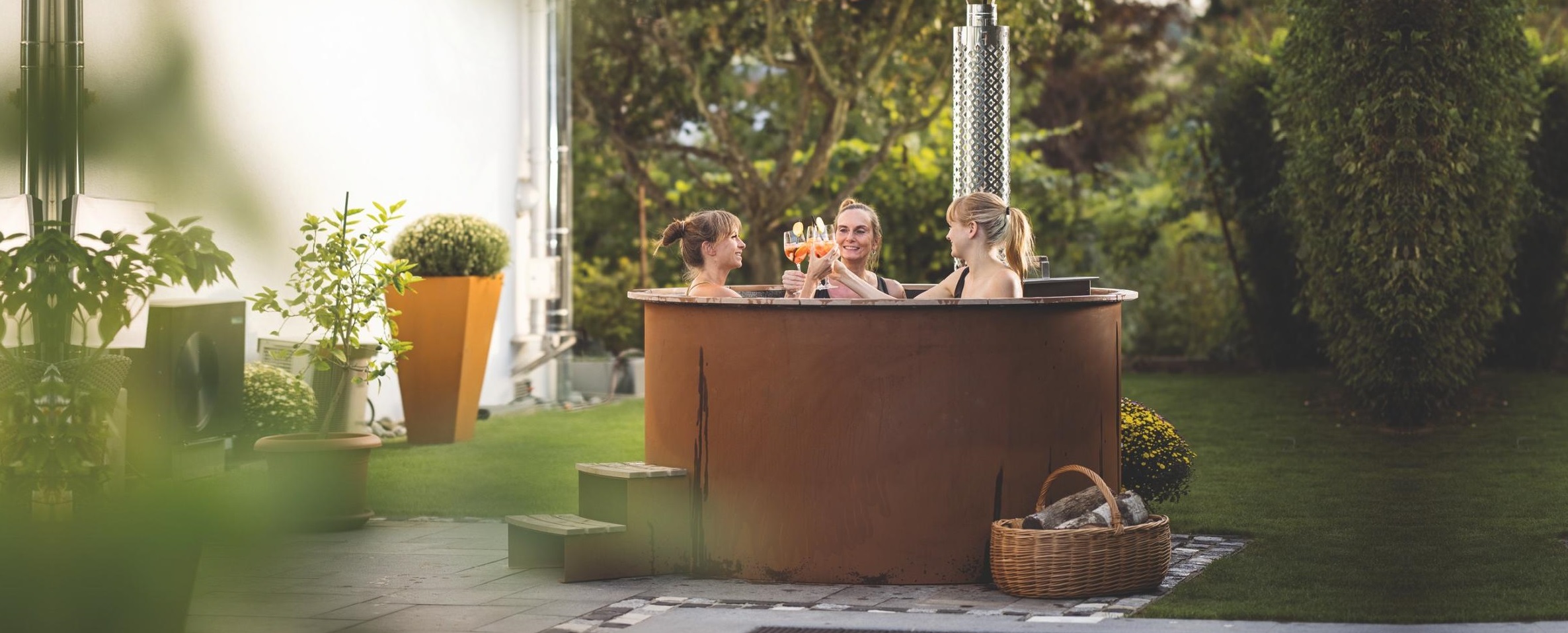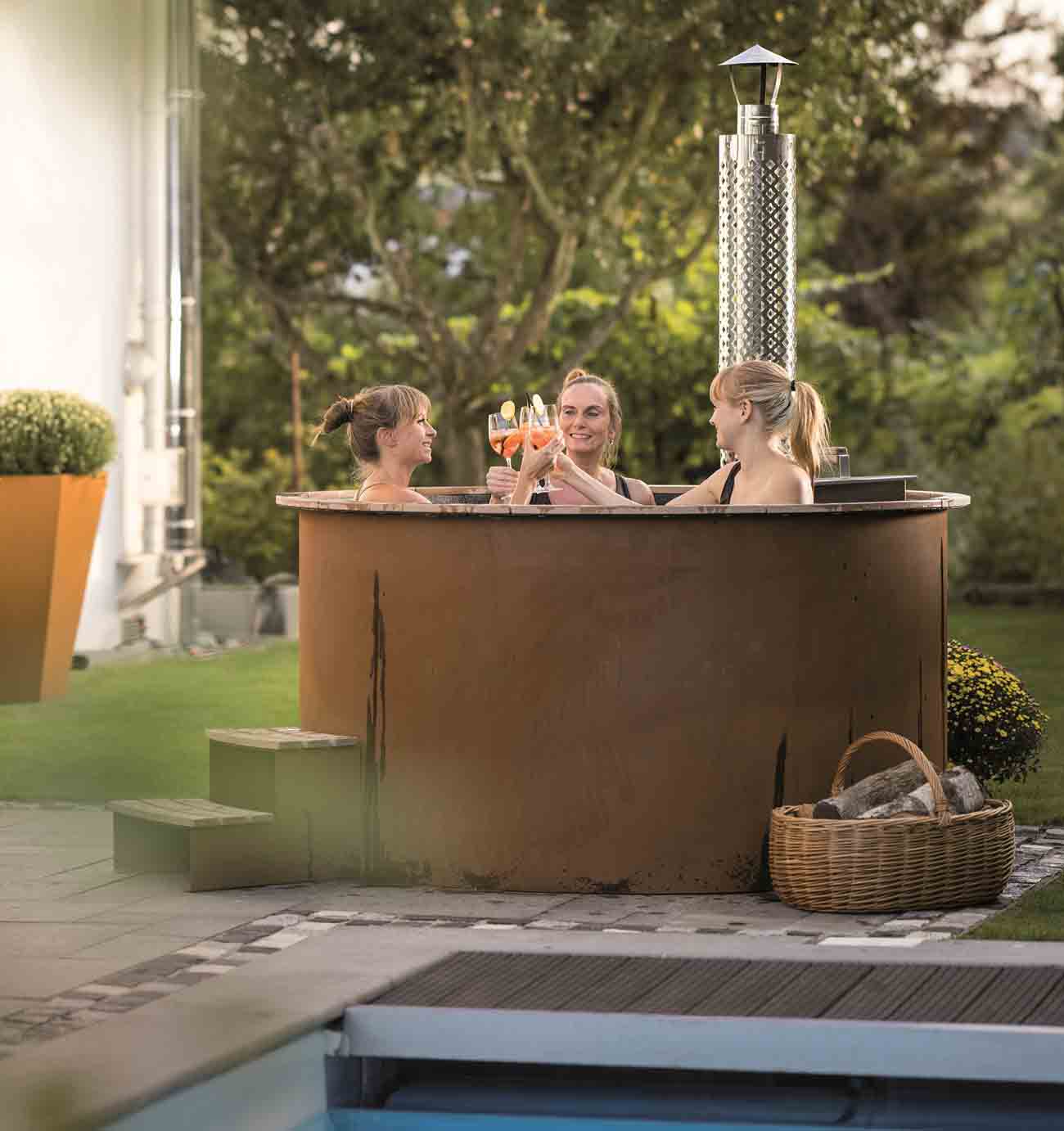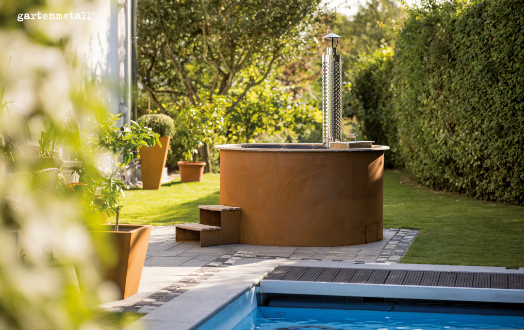 Jetzt im Hochsommer präsentiert sich das stabile Badefass AQUA LUND aus Metall als erfrischende Alternative: Ob als Minipool zum Abkühlen für Groß und Klein oder entspannter Badespaß – Ihre mobile Wellnessoase wartet im Garten. Innen sorgt die hochwertige schwarze Beschichtung für angenehmen Sitzkomfort, außen die elegante RESYSTA®-Leiste in Holzoptik für stilvolle Akzente. Übrigens: Der integrierte Holzofen und die gebogene Abtrennung lässt sich mit wenigen Handgriffen entfernen – so gewinnen Sie im Sommer noch mehr Platz zum Eintauchen; im Herbst und Winter bringt er wieder wohlige Wärme.