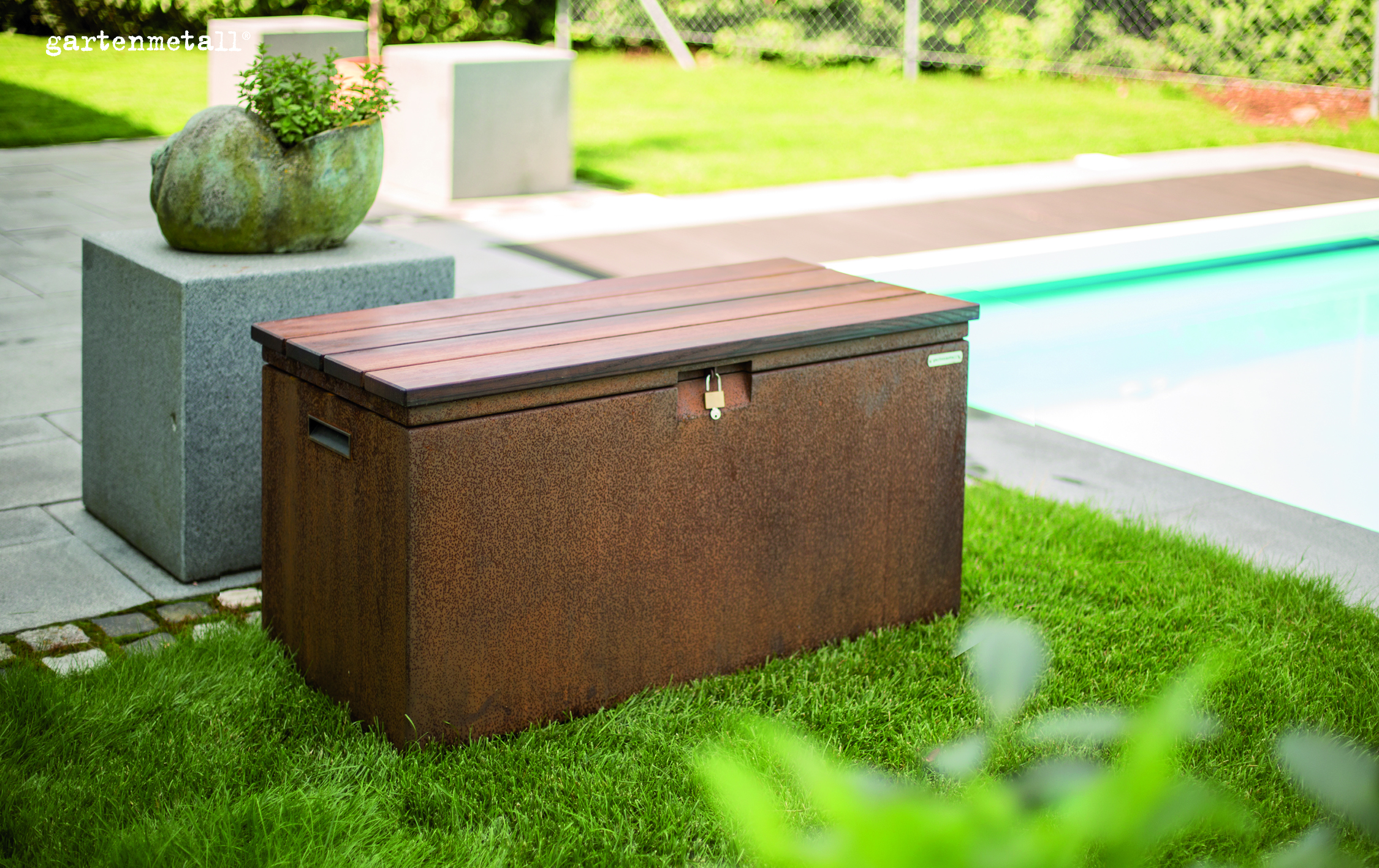 – Zum Schutz vor Schmutz und Feuchtigkeit hat die Box innen eine hochwertige, elastische, UV-– stabile, wasserfeste und schwarze Gartenmetall®-Kunststoffbeschichtung