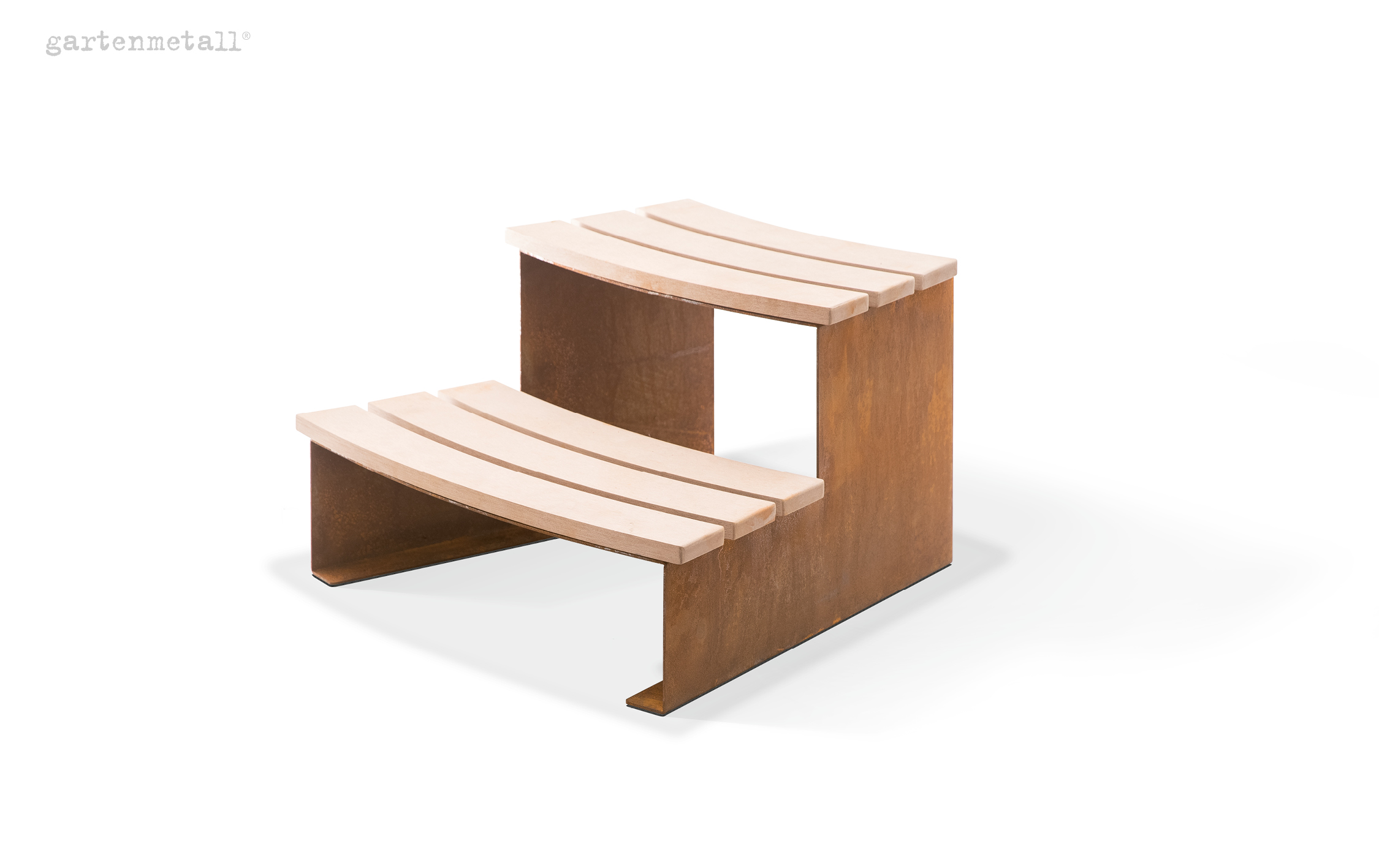 - Treppenpodest für einen erleichterten Einstieg in das Badefass mit Trittstufen aus gebogenem RESYSTA in Holzoptik. (Art.Nr.: GA-25 XX 48-00-0600)