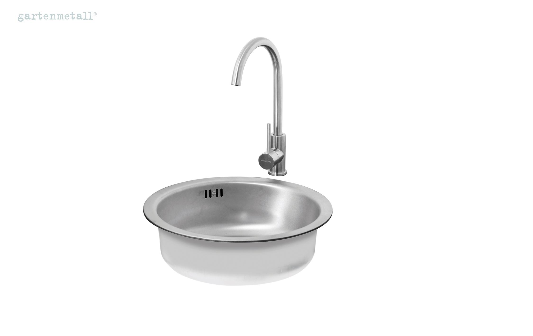 inkl. Einbau‐Spülbecken Ø450 mm in Arbeitsplatte und Edelstahl‐Wasserhahn