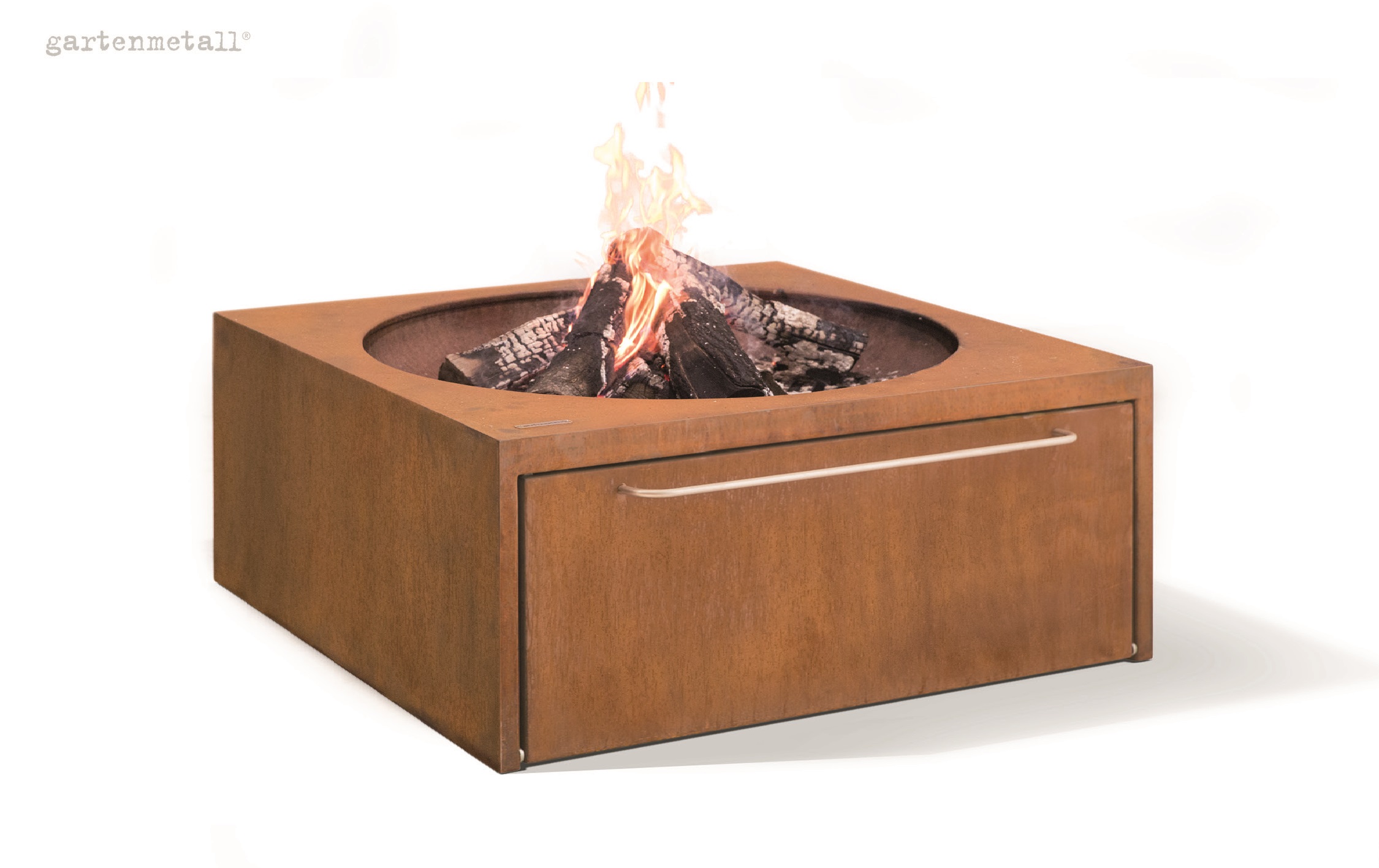 Feuerstelle TROJA QUADRATISCH 1.200 mm mit Seitentür