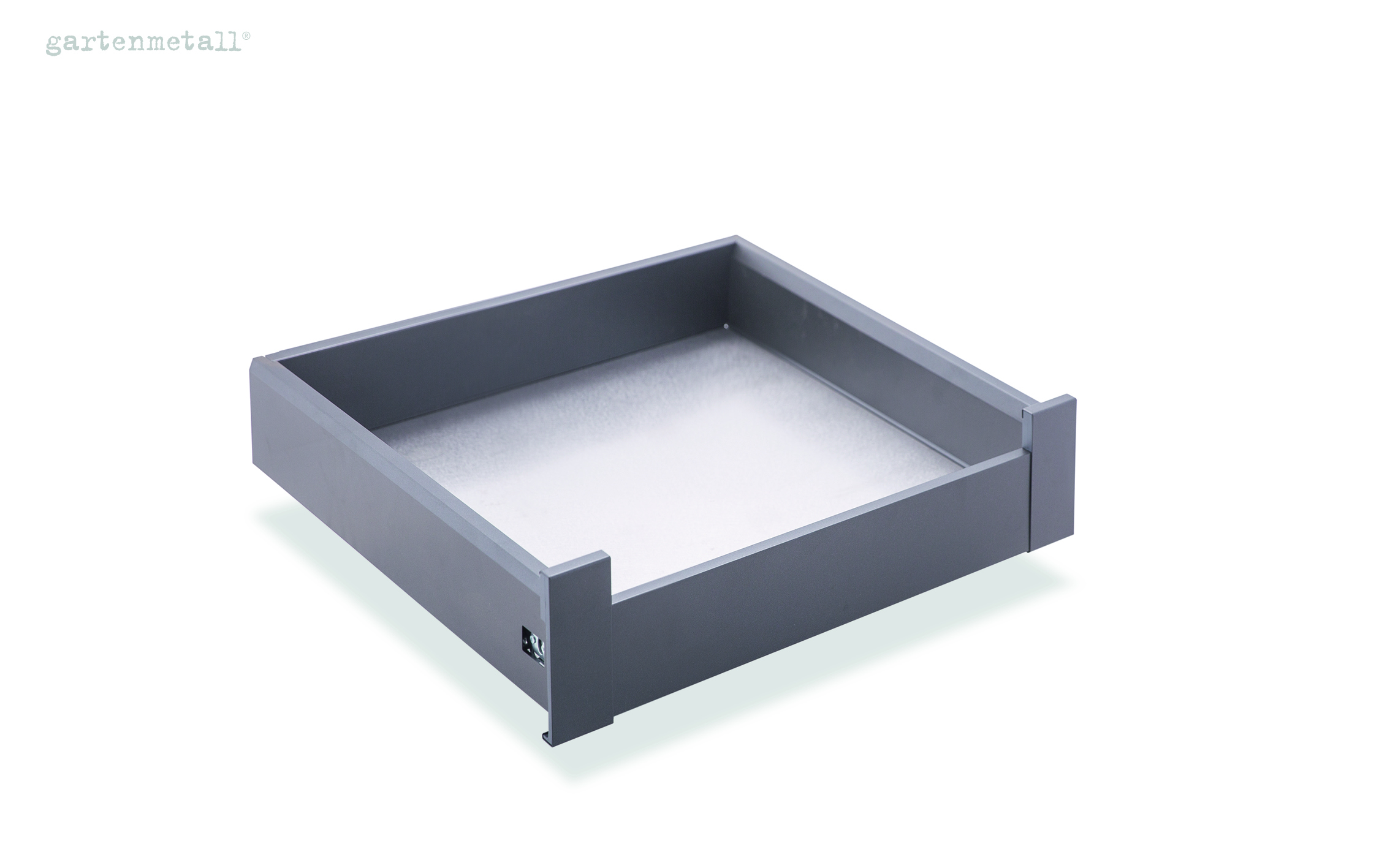 – Oberfläche Schubladenboden: Edelstahl, matt, rotex-geschliffen
