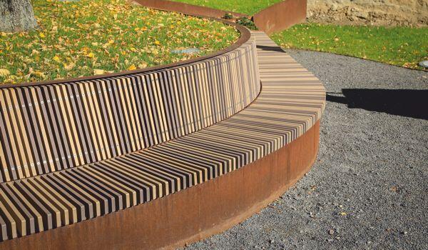 RESYSTA® ist ein auf ökologischer Basis hergestellter Naturfaser-Verbund in Holzoptik und besteht hauptsächlich aus Reishülsen. Durch ein spezielles Verfahren werden diese in einer Polymermatrix homogen verbunden und erlangen so eine hohe Materialbeständigkeit sowie die holzähnliche Optik und Haptik. Es ergeben sich viele günstige Eigenschaften, so dass das Material hervorragend als Sitzauflage für Bänke geeignet ist. Besondere Merkmale von RESYSTA sind: