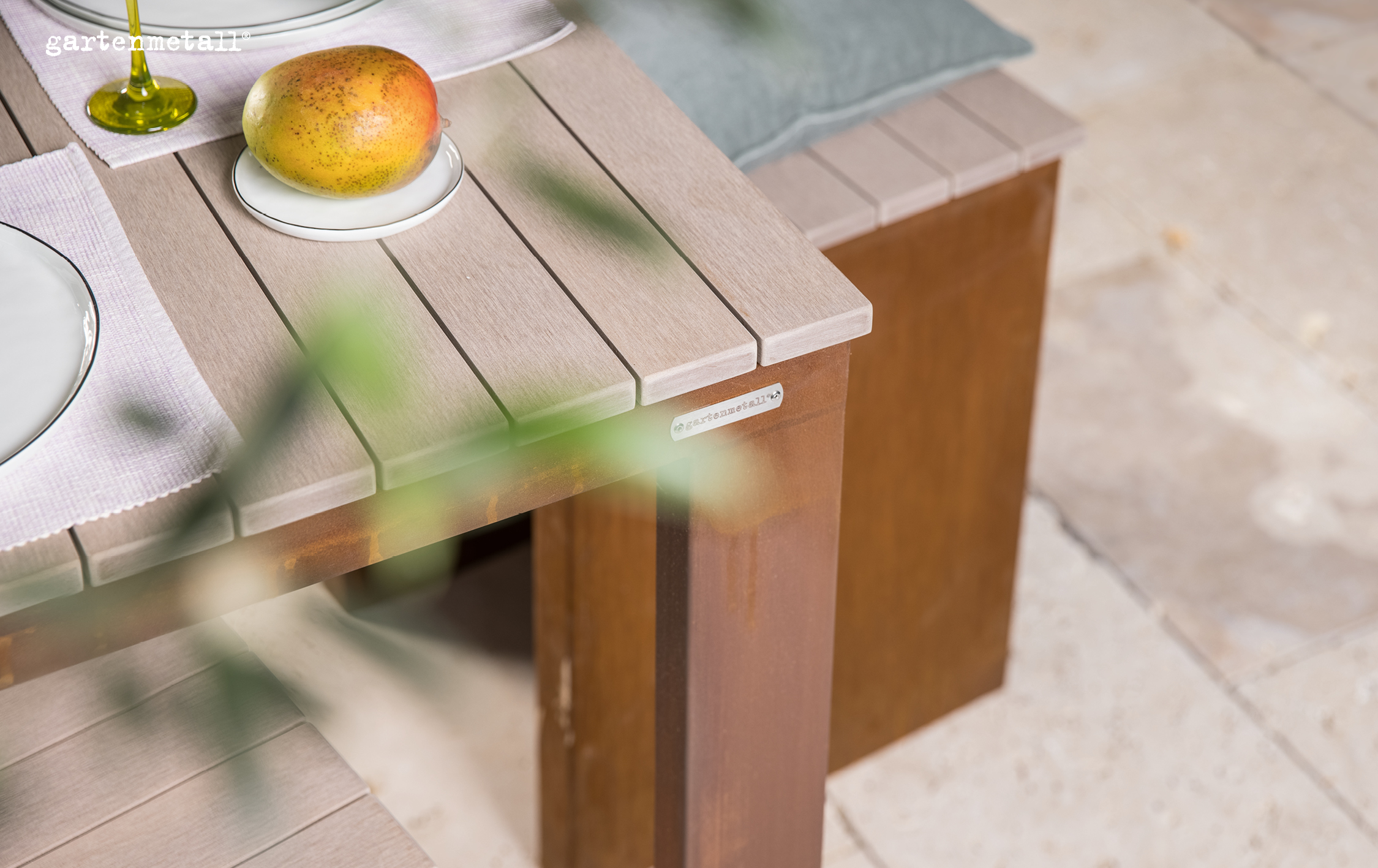 RESYSTA® ist ein innovativer Hybridwerkstoff, der eine elegante Kombination aus Langlebigkeit, Vielseitigkeit und Ästhetik bietet. Im Gegensatz zu herkömmlichen Materialien besteht RESYSTA® aus einer Mischung aus Reishülsen, Salz und Mineralöl, wodurch ein äußerst widerstandsfähiges Produkt entsteht. Es sieht und fühlt sich an wie hochwertiges Tropenholz, ist jedoch viel widerstandsfähiger gegenüber Feuchtigkeit und UV-Strahlung. Dadurch behält es auch nach Jahren intensiver Nutzung seine ursprüngliche Farbe und Struktur bei und bietet somit langanhaltende Freude. RESYSTA ist nicht nur ein hochwertiger und langlebiger Werkstoff, sondern trägt auch aktiv zum Umweltschutz bei. Da es hauptsächlich aus nachhaltigen und recycelbaren Materialien besteht, hilft es, die Umweltbelastung zu reduzieren und einen Beitrag zur Erhaltung unserer natürlichen Ressourcen zu leisten.