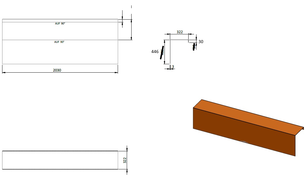Abkantung oben: 322 mm / 30 mm - Außenmaß