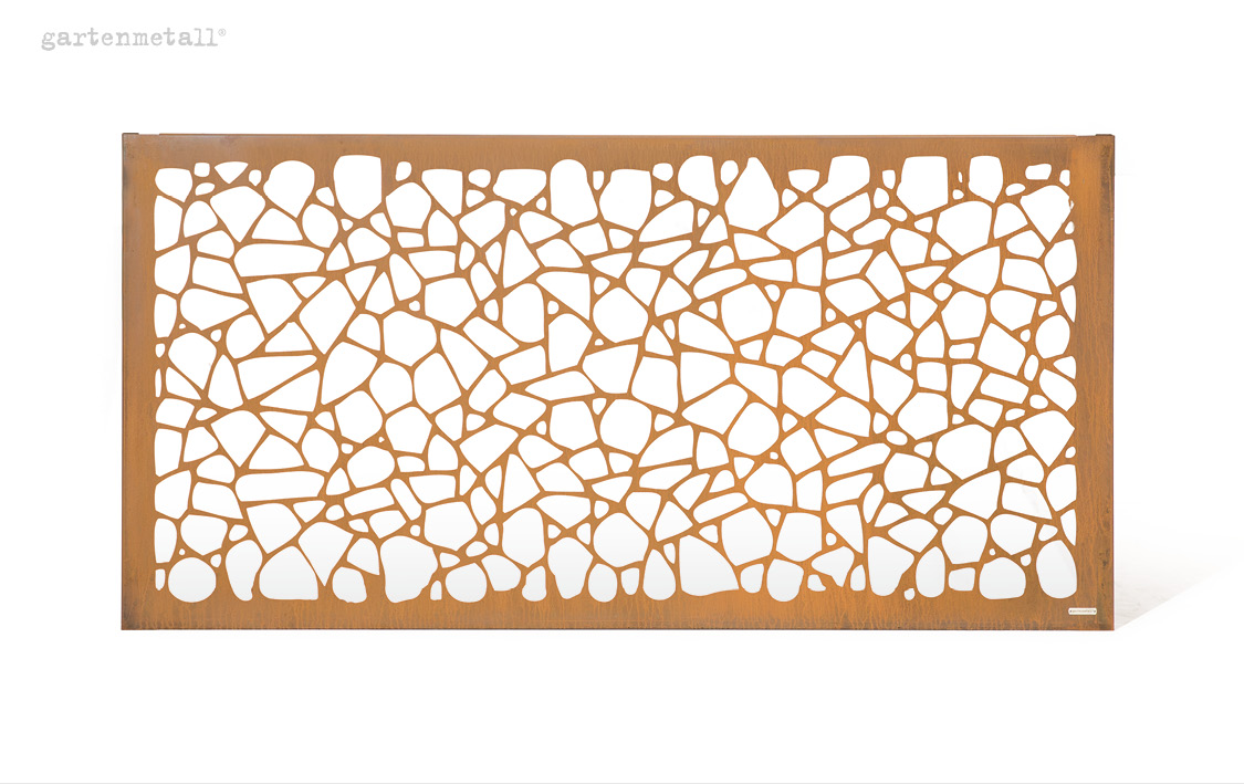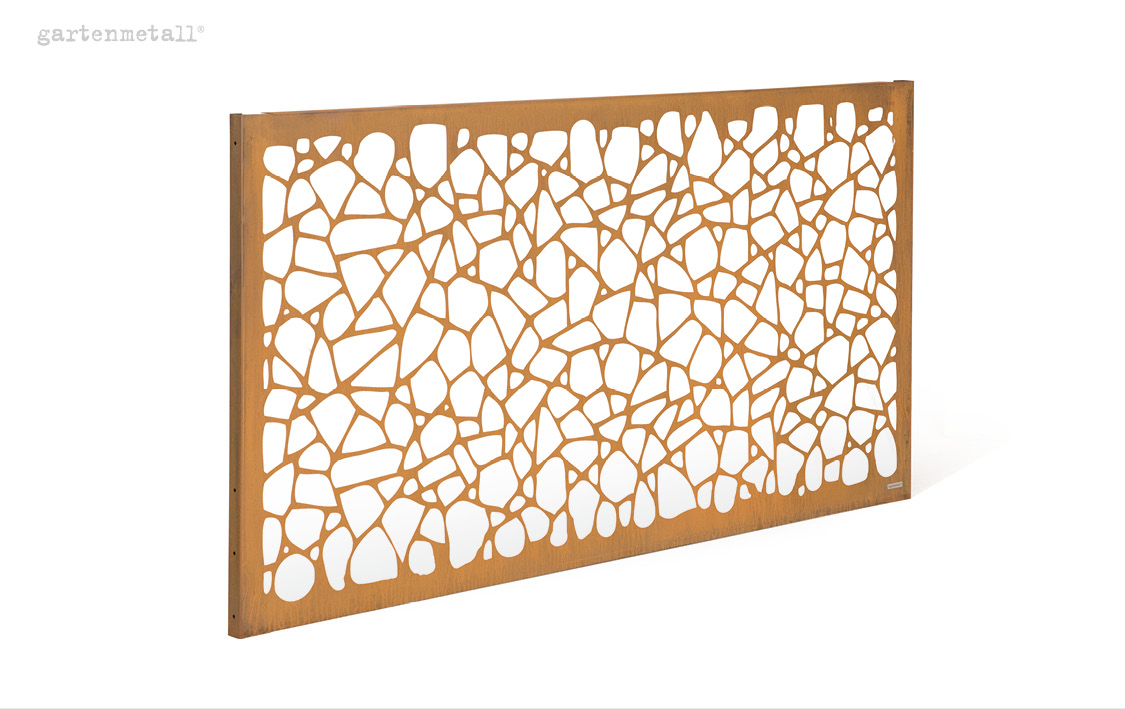 Statt abzuschirmen oder abzutrennen, lenkt VISTA den Blick. Sie schafft Orientierung, betont Sichtachsen oder bildet einen ruhigen Abschluss für Terrassen, Sitzplätze oder Gartenräume. Je nach Standort verändert sich ihre Wirkung im Tagesverlauf: Licht und Schatten spielen mit dem Motiv und sorgen dafür, dass die Wand immer wieder neu wahrgenommen wird. So entsteht Atmosphäre, ohne den Raum zu dominieren.