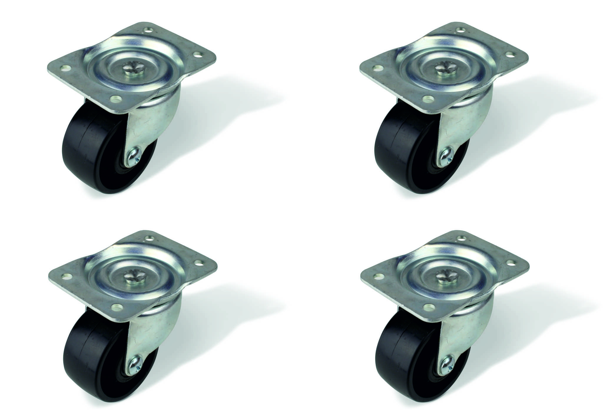 Rollensatz besteht aus 4 Lenkrollen, die von unten am Bodenblech des Pflanzgefäßes angeschraubt sind. Lichter Abstand Pflanzgefäß - Boden: ca. 40 mm Schwarze Hart-Kunstoffrolle Kugelgelagerte Felge Raddurchmesser: 65 mm Radbreite: 32 mm Plattengröße: 90 x 70 mm Lochabstand: 75 x 45 mm Bauhöhe: 88 mm Tragkraft pro Rolle: 100 kg max. Größe für Pflanzgefäße mit Rollen: ca. 800x800x800 mm