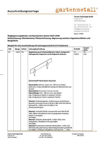 Wegbegrenzungsbänder EASY‐LINER in individuellen Maßen und Materialien.