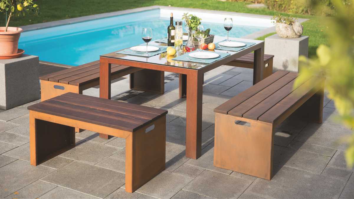GARDA - Gartentische und Sitzbänke aus Cortenstahl