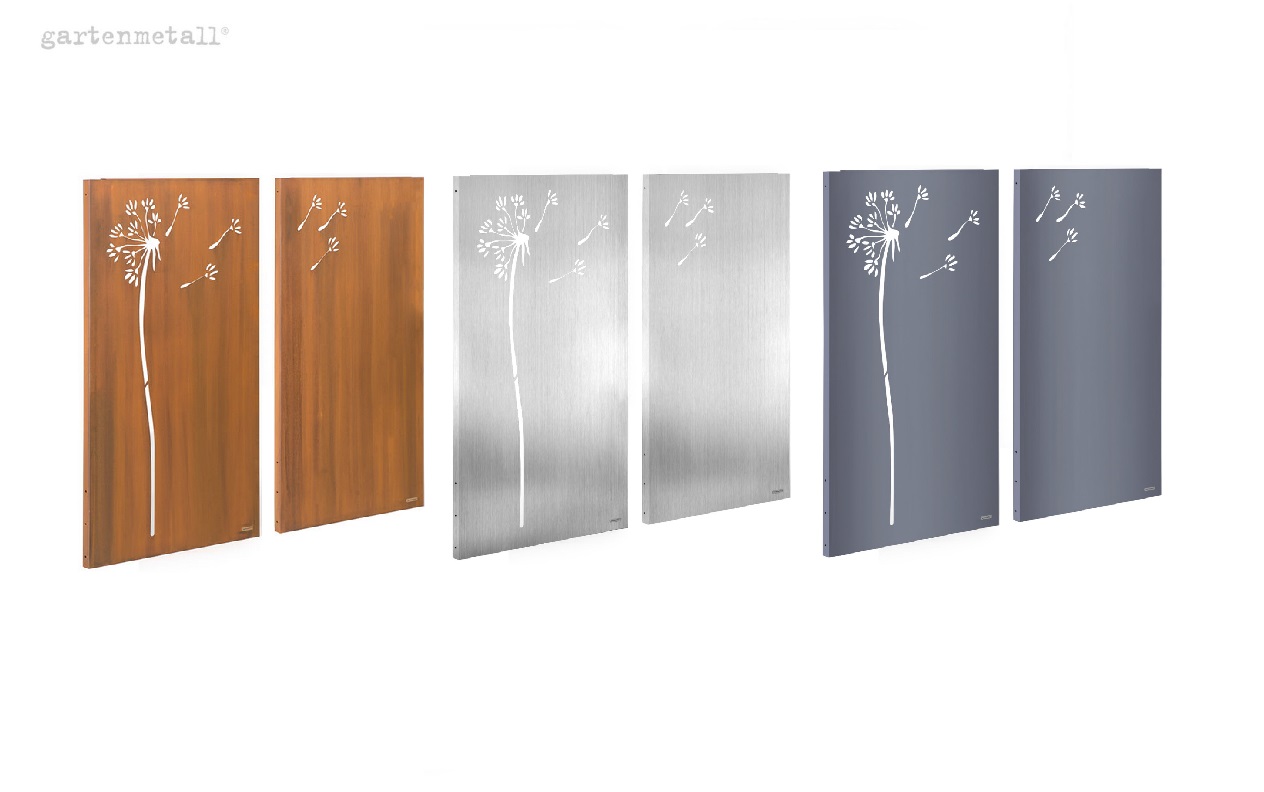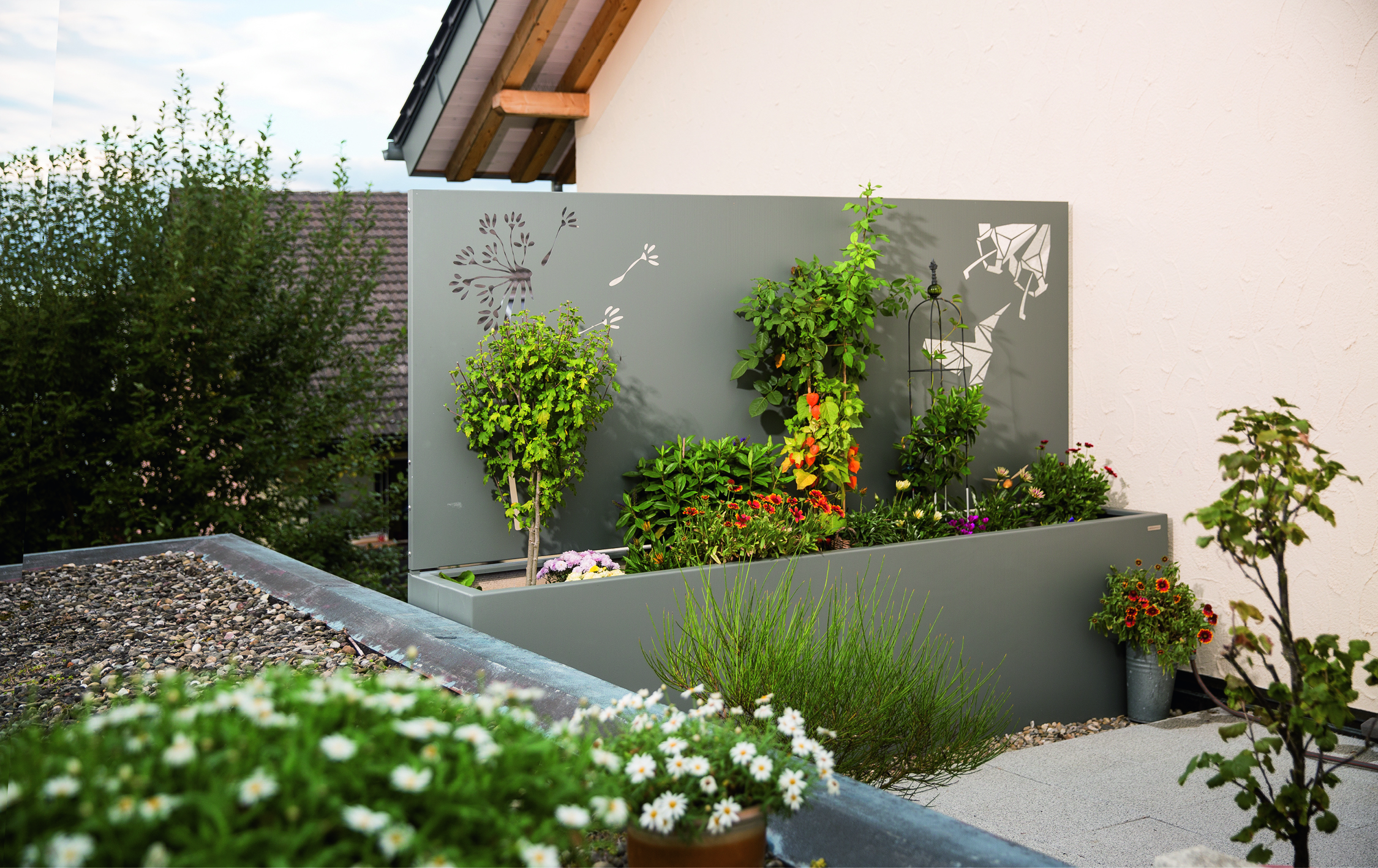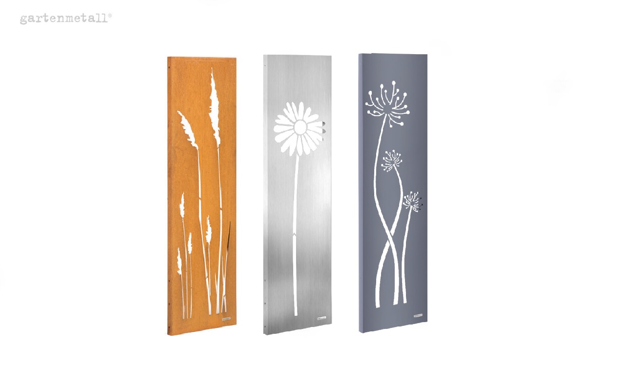 Die Metall-Sichtschutzwände VISTA von Gartenmetall bieten effektiven Schutz vor neugierigen Blicken und Wind und schaffen gleichzeitig stilvolle Strukturen im Garten oder auf der Terrasse. Gefertigt aus Cortenstahl, Edelstahl oder farbbeschichtetem Edelstahl, überzeugen sie durch Stabilität, Langlebigkeit und hochwertige Verarbeitung. Dank einer großen Auswahl an dekorativen Motiven sowie der Möglichkeit individueller Anfertigungen lassen sich die Sichtschutzwände perfekt an jeden Gartenstil anpassen.