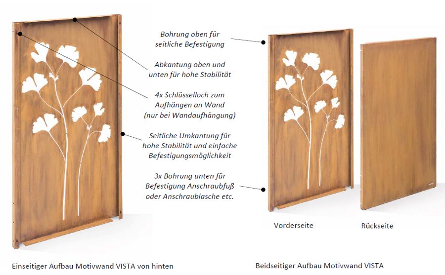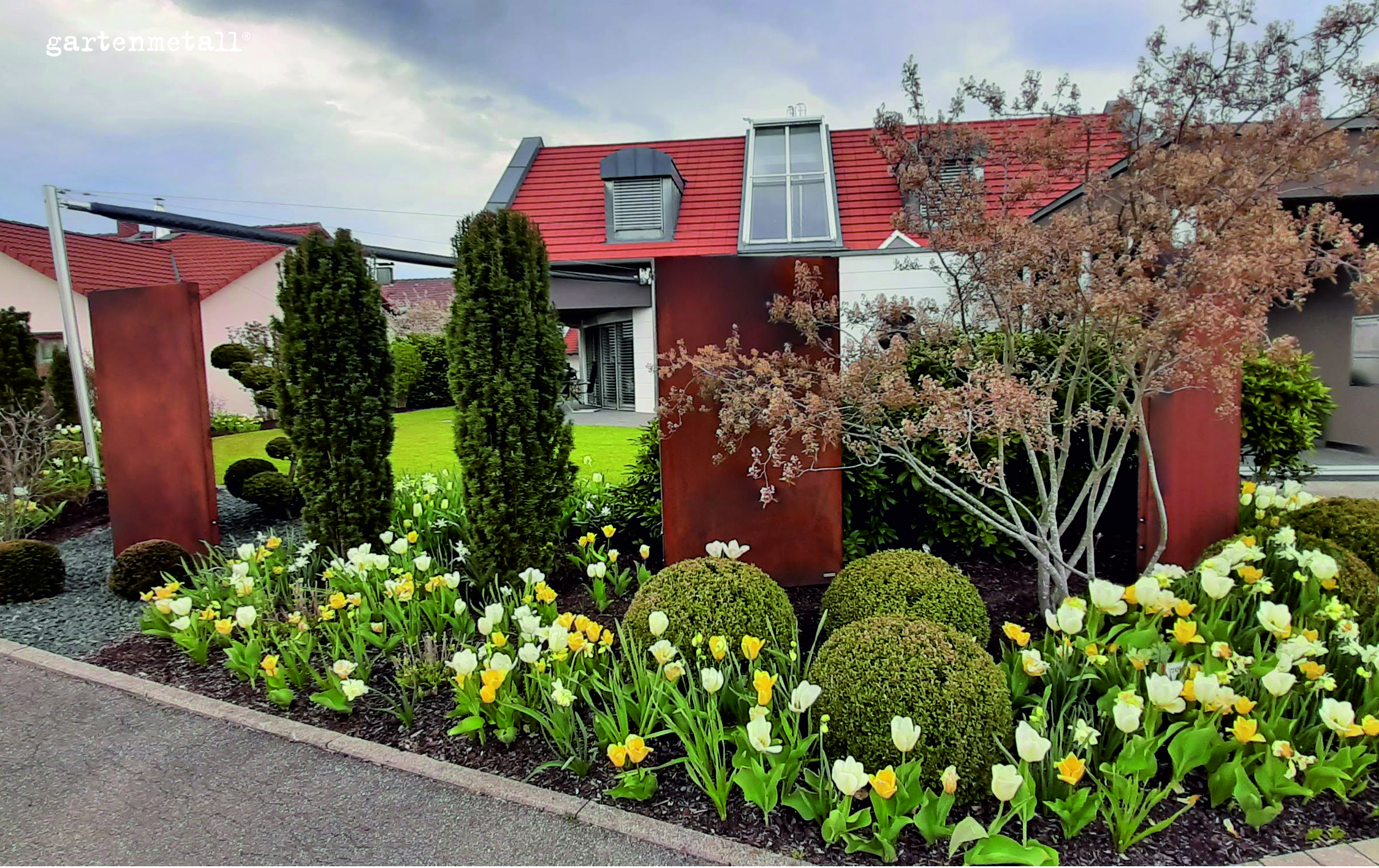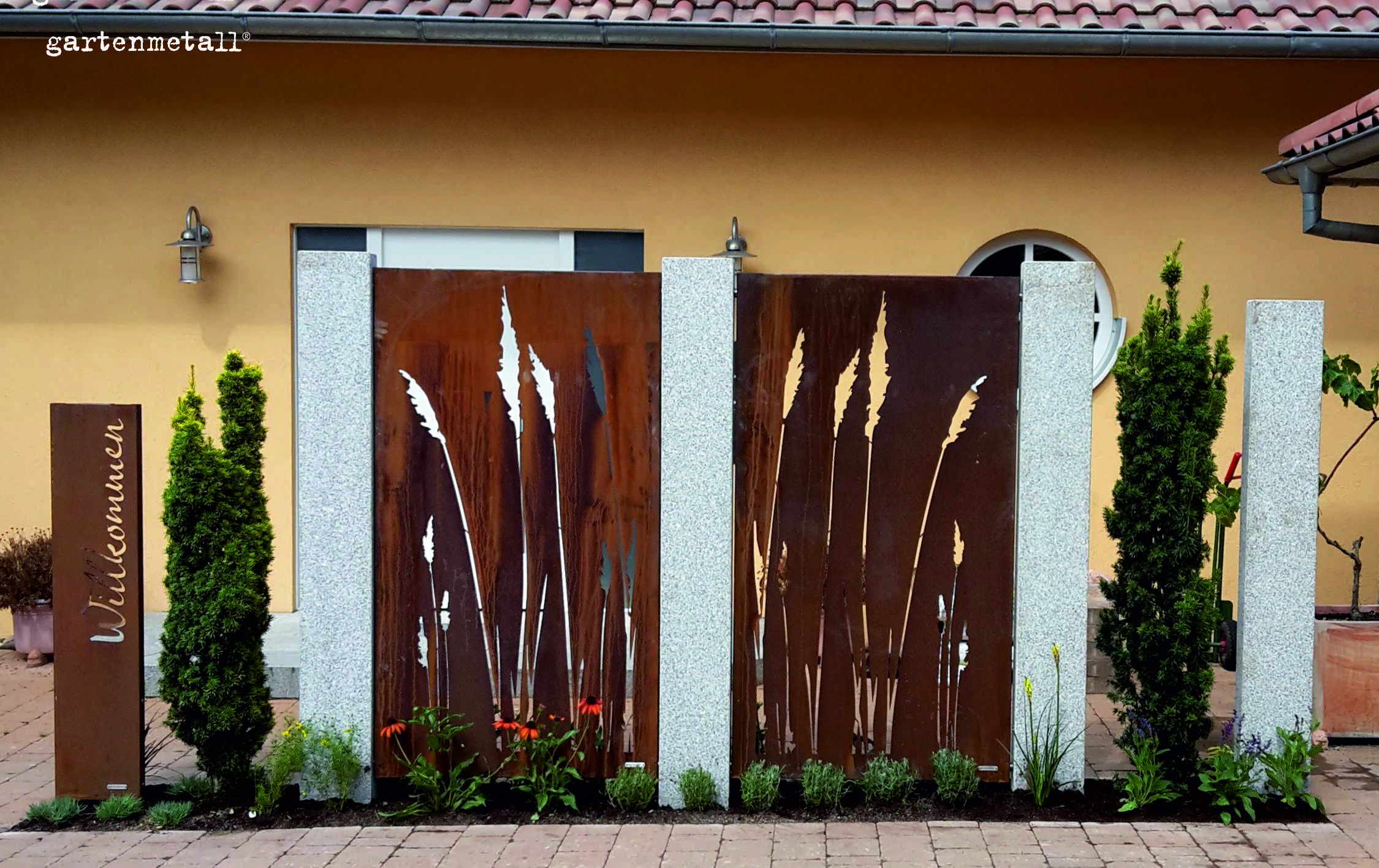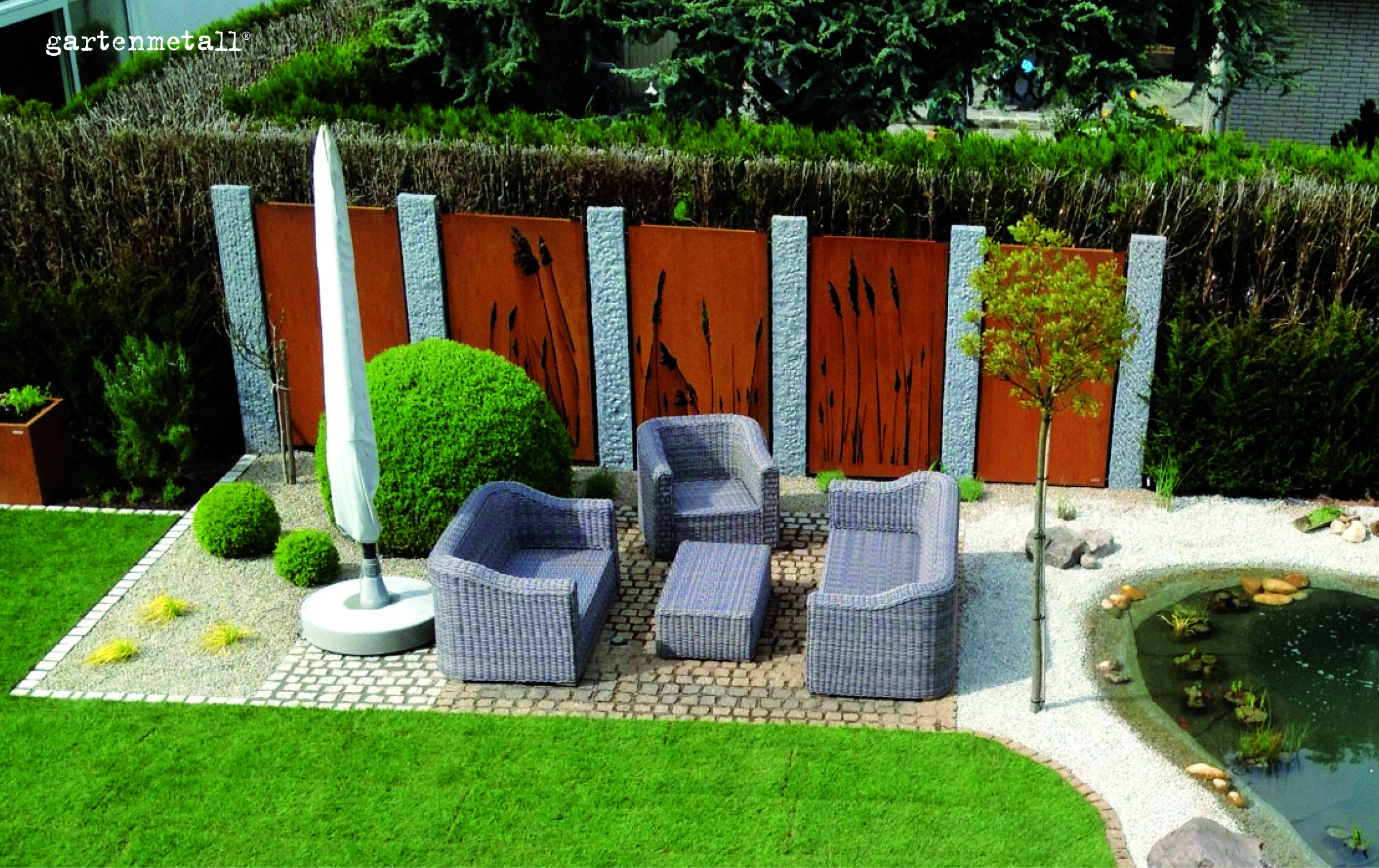 Die Metall-Sichtschutzwände VISTA von Gartenmetall bieten effektiven Schutz vor neugierigen Blicken und Wind und schaffen gleichzeitig stilvolle Strukturen im Garten oder auf der Terrasse. Gefertigt aus Cortenstahl, Edelstahl oder farbbeschichtetem Edelstahl, überzeugen sie durch Stabilität, Langlebigkeit und hochwertige Verarbeitung. Dank einer großen Auswahl an dekorativen Motiven sowie der Möglichkeit individueller Anfertigungen lassen sich die Sichtschutzwände perfekt an jeden Gartenstil anpassen.