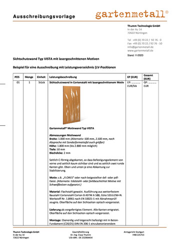 VISTA – Sichtschutzwände mit ausgeschnittenen Motiven aus Metall