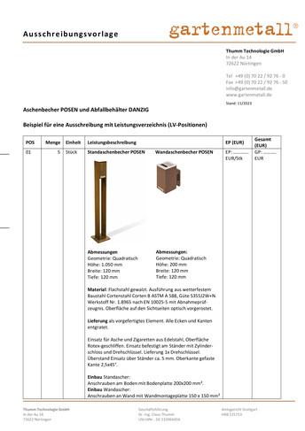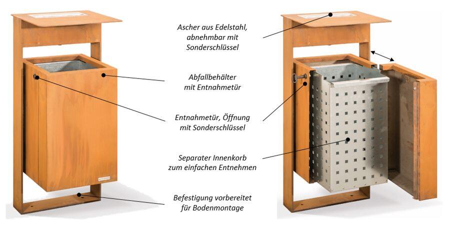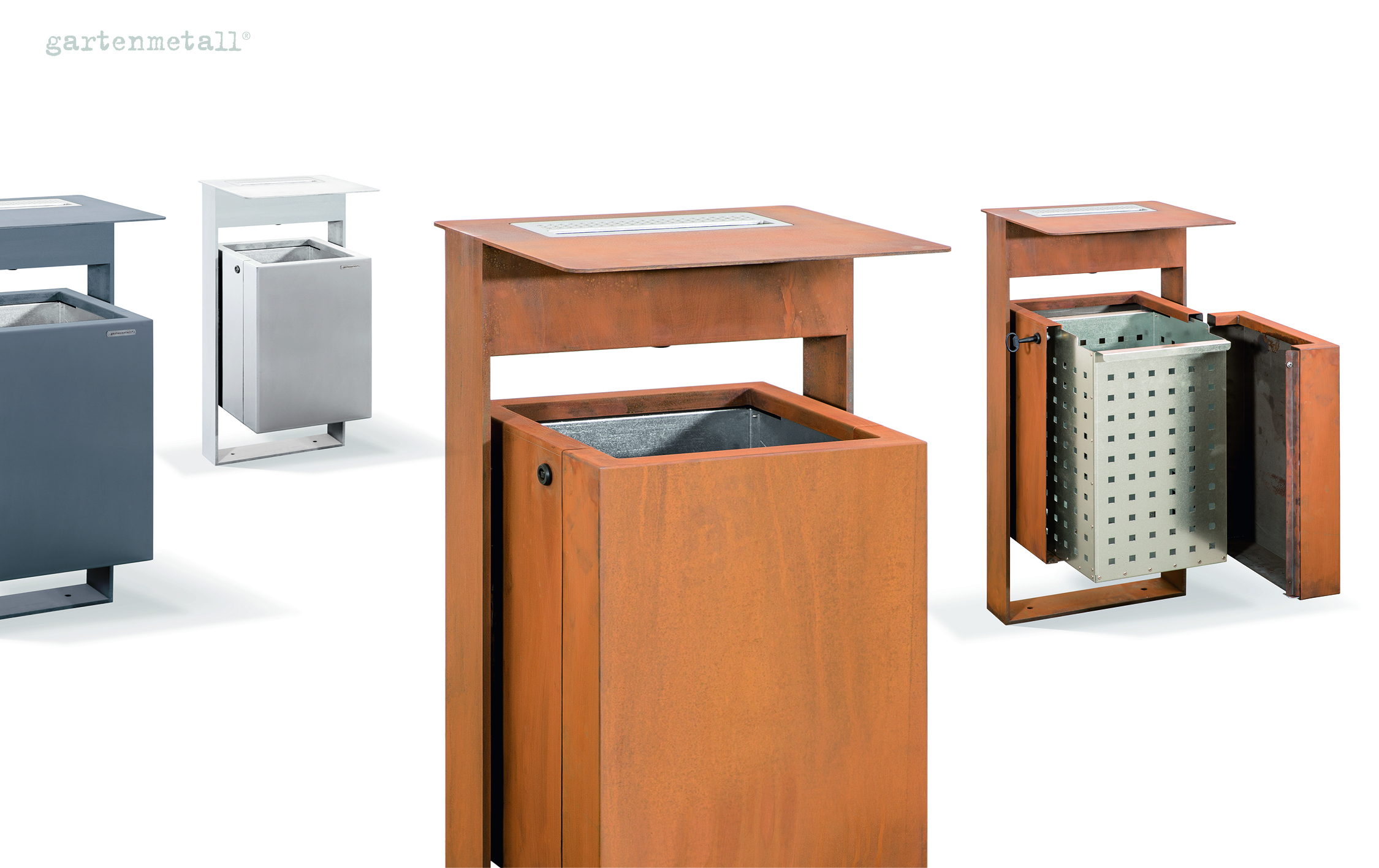 ABFALLBEHÄLTER UND ASCHENBECHER aus Cortenstahl: DANZIG & POSEN