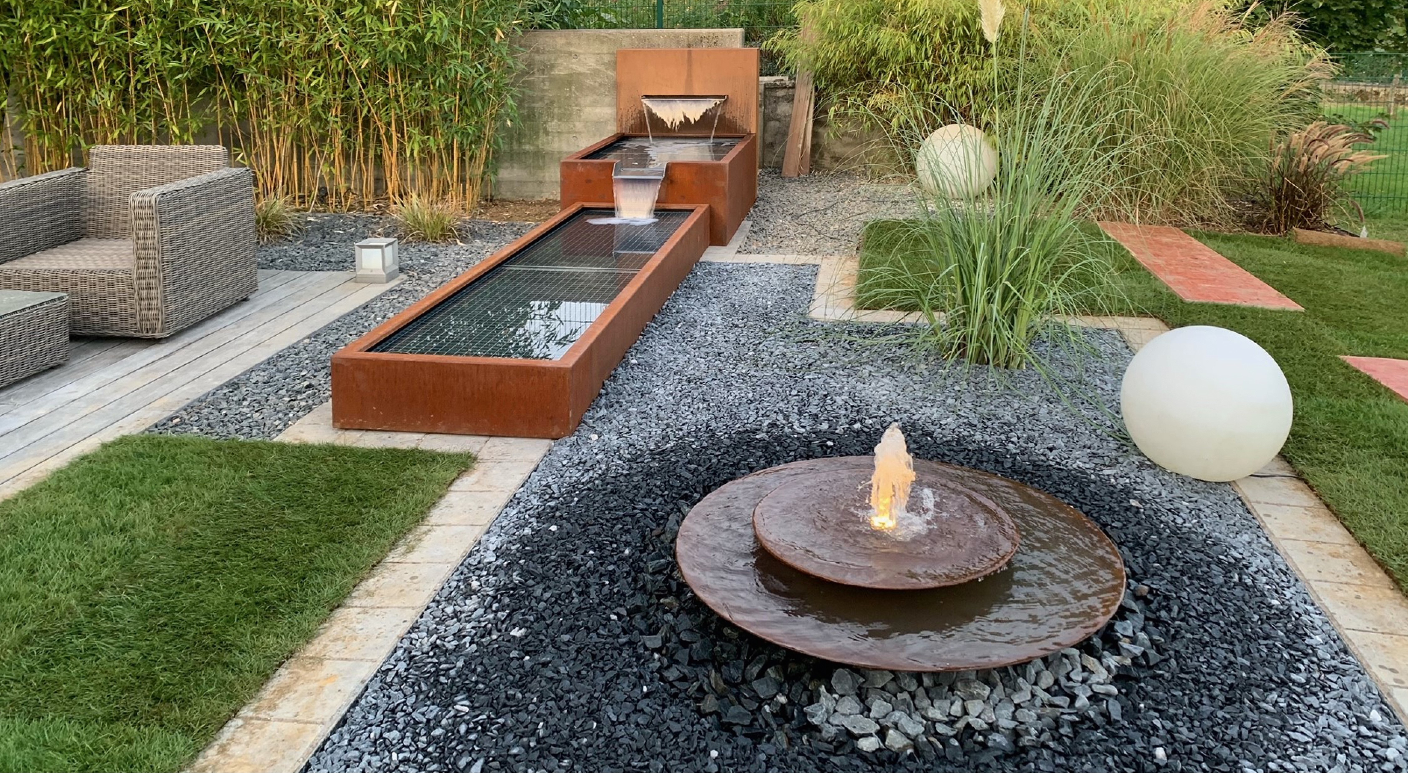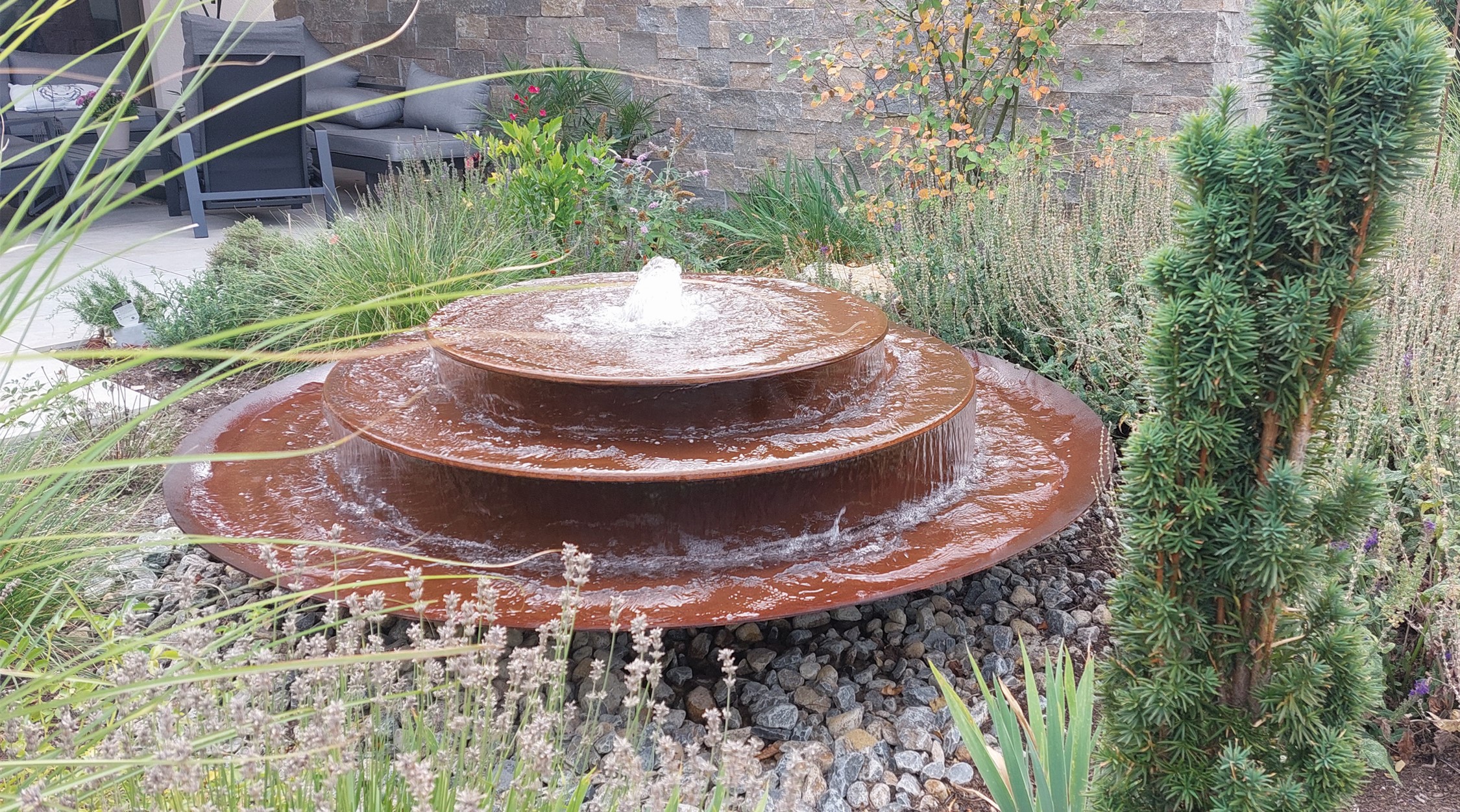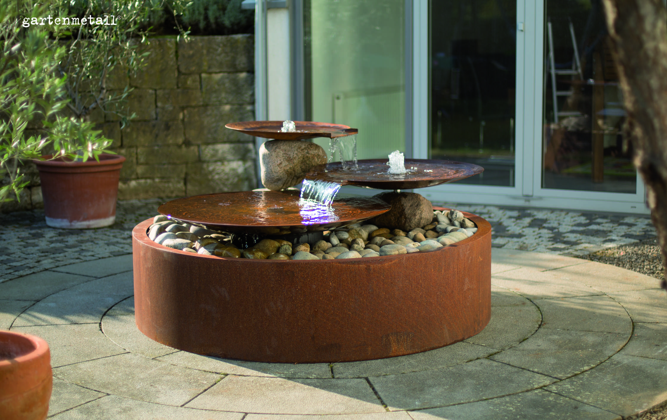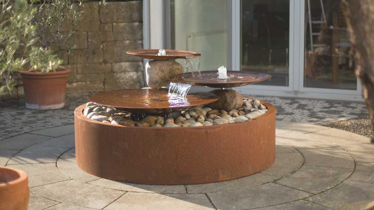 Die runden Wasserschalen aus Cortenstahl oder Edelstahl schaffen stilvolle Wasserspiele für Garten und Terrasse. Mit dem modularen AQUA BOWL System lassen sich individuelle Gestaltungsideen einfach umsetzen. Die vorgefertigten Sets passen ideal in kleinere Gärten, und Schalen mit einem Durchmesser von bis zu zwei Metern sind direkt ab Lager verfügbar.