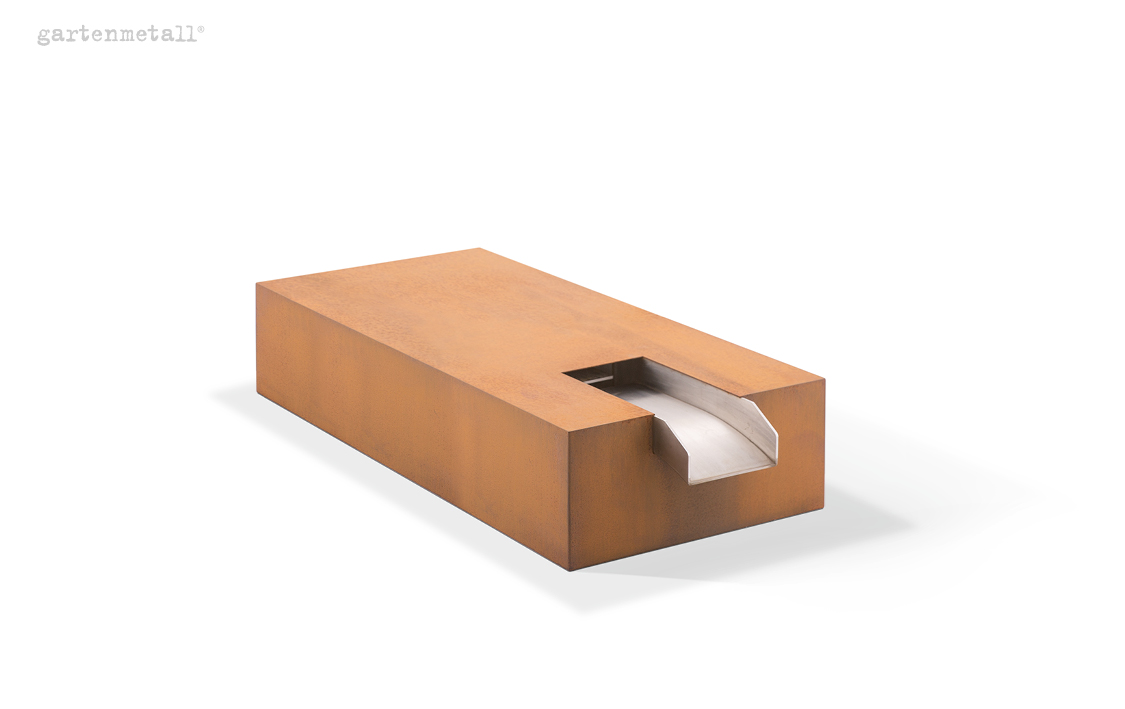 – Bei Quellbrunnen aus Cortenstahl kann es insbesondere in den ersten Jahren zu einer Rostablösung von bis zu 0,05 mm der Oberfläche kommen. Die Aufstellung ist so zu planen, dass diese Rostablösung kontrolliert und definiert ablaufen kann.