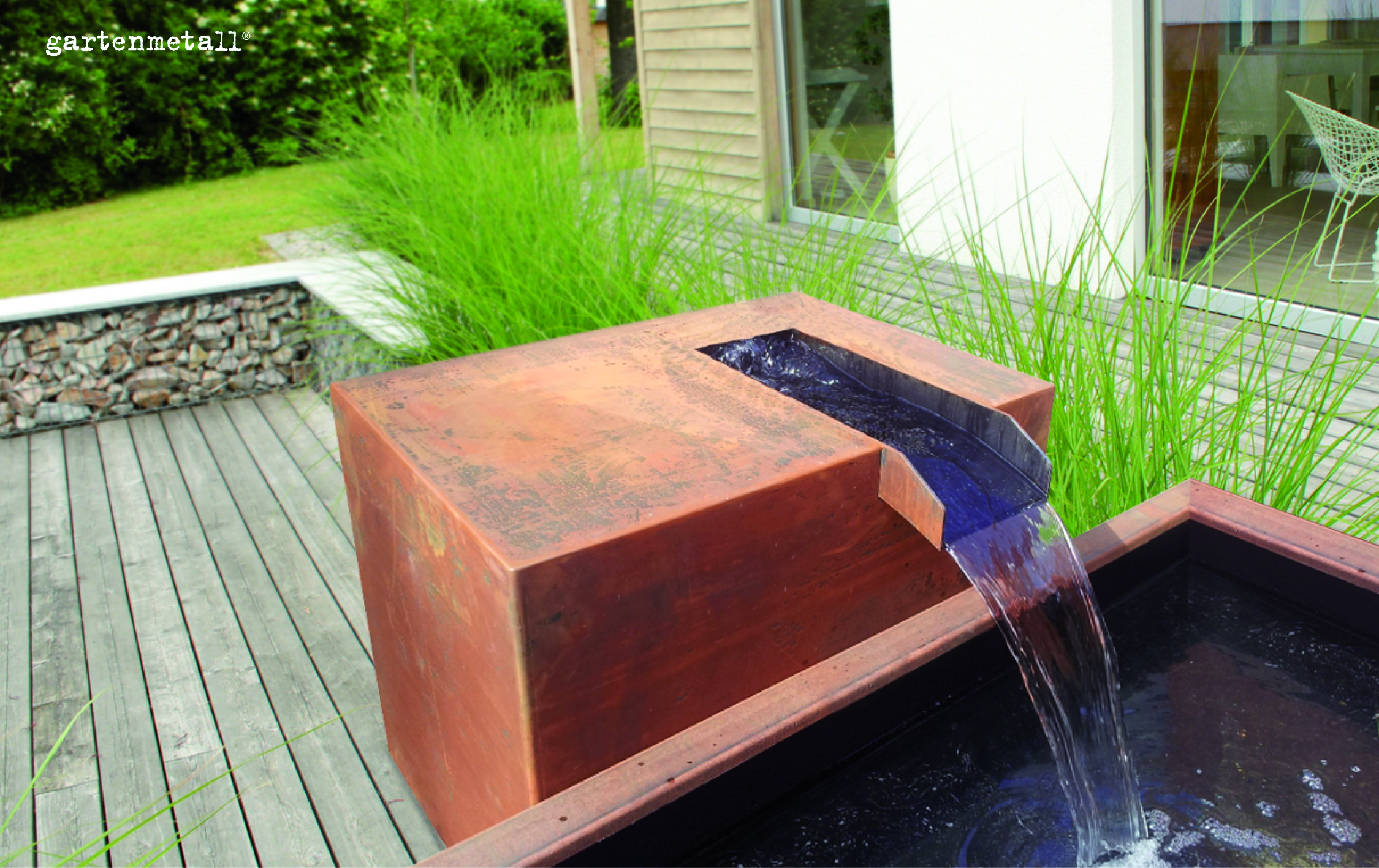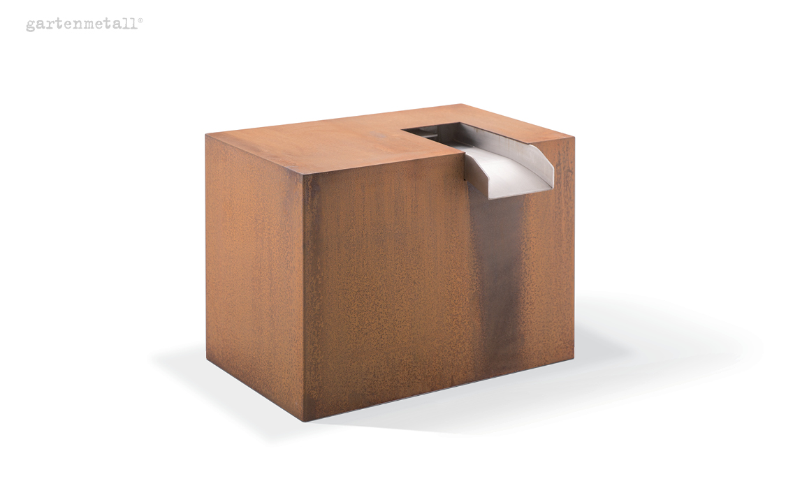 – Bei Quellbrunnen aus Cortenstahl kann es insbesondere in den ersten Jahren zu einer Rostablösung von bis zu 0,05 mm der Oberfläche kommen. Die Aufstellung ist so zu planen, dass diese Rostablösung kontrolliert und definiert ablaufen kann.