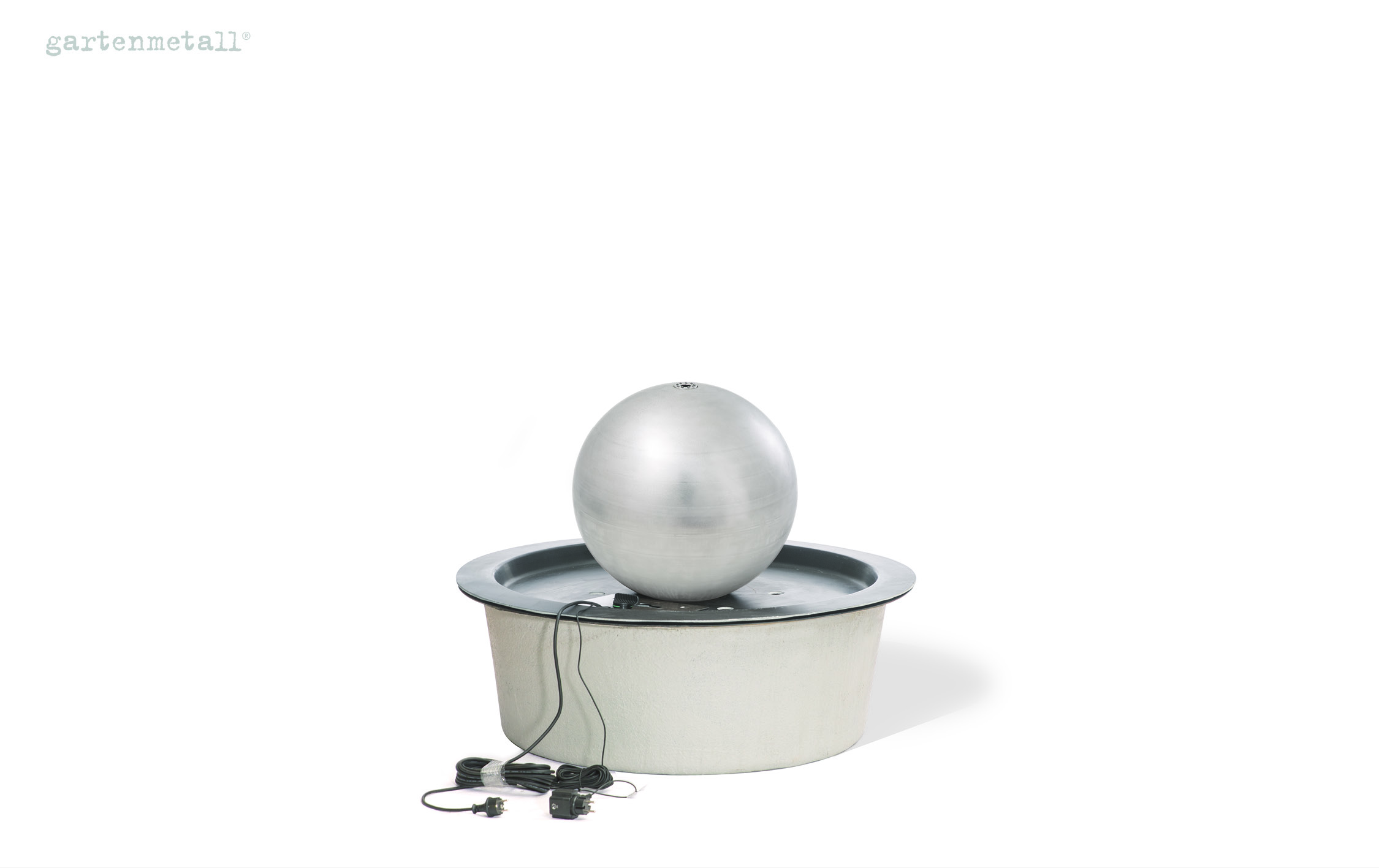 Lieferung komplett funktionstüchtig inkl. Quellkugel, GFK-Wassersammelbecken, Pumpe, Durchflussregler, passende Schläuche, Fittings und LED-Beleuchtung am Wasseraustritt an der Kugel