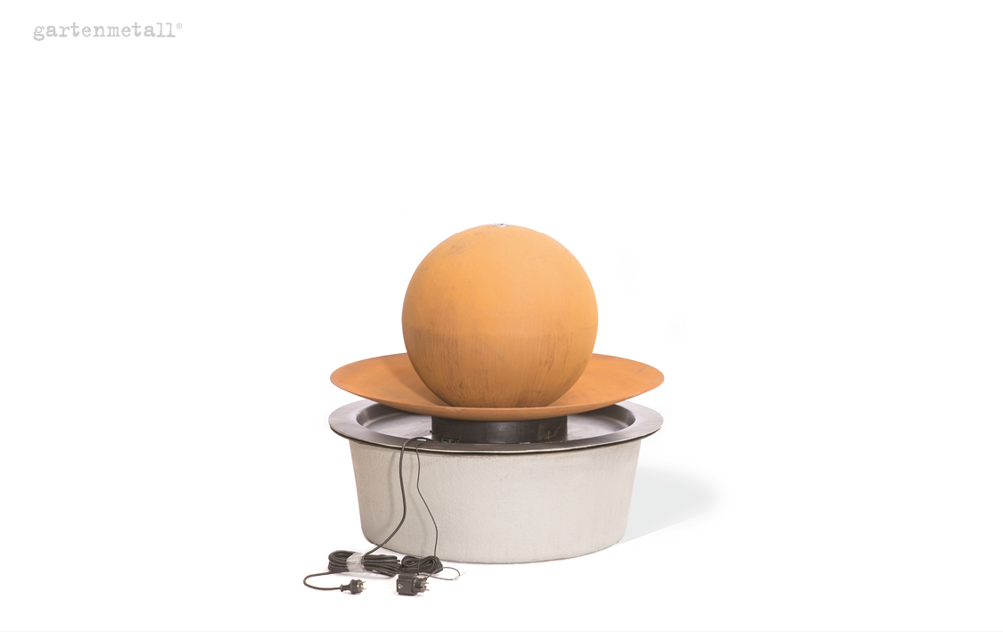– Pflegehinweis: Damit der Cortenstahl an den wasserbenetzten Oberflächen seine schützende Sperrschicht aufbauen und erhalten kann, muss das Material mindestens einmal pro Woche vollständig abtrocknen. Die Wasserpumpe sollte z. B. mit einer Zeitschaltuhr regelmäßig abgeschaltet werden.