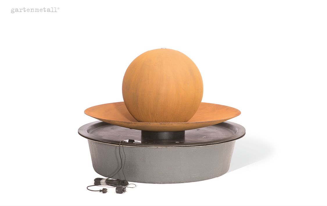 – Pflegehinweis: Damit der Cortenstahl an den wasserbenetzten Oberflächen seine schützende Sperrschicht aufbauen und erhalten kann, muss das Material mindestens einmal pro Woche vollständig abtrocknen. Die Wasserpumpe sollte z. B. mit einer Zeitschaltuhr regelmäßig abgeschaltet werden.