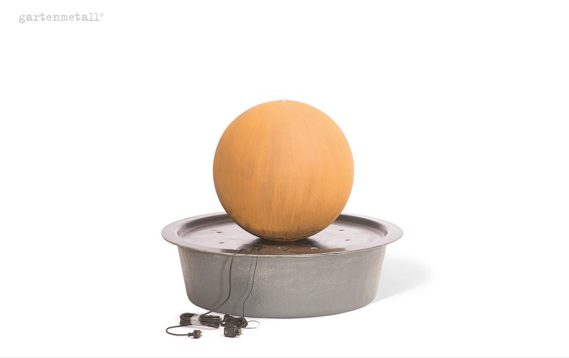 – Pflegehinweis: Damit der Cortenstahl an den wasserbenetzten Oberflächen seine schützende Sperrschicht aufbauen und erhalten kann, muss das Material mindestens einmal pro Woche vollständig abtrocknen. Die Wasserpumpe sollte z. B. mit einer Zeitschaltuhr regelmäßig abgeschaltet werden.