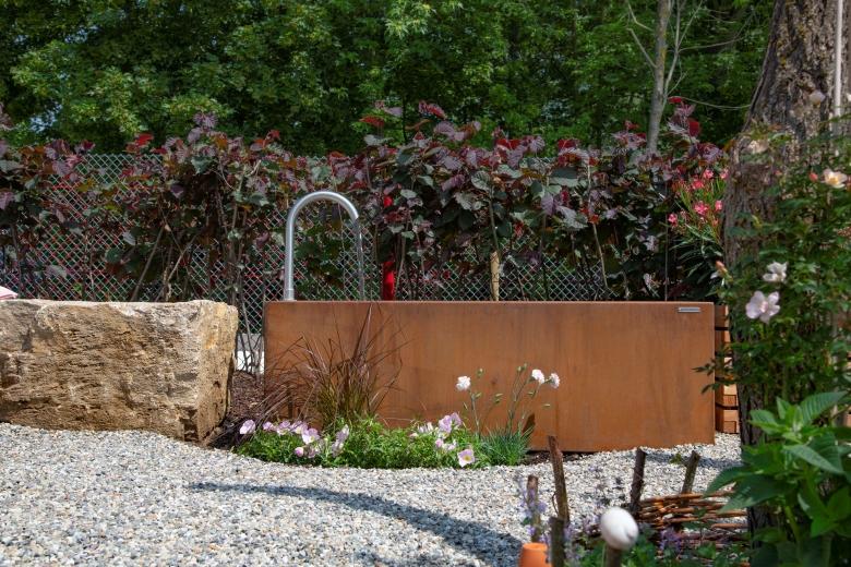– Hochwertige, elastische, UV-stabile, schwarze und wasserfeste Gartenmetall®-Kunststoffbeschichtung im Wassertrog