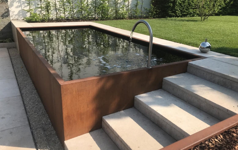 – Bei Cortenstahl kann es insbesondere in den ersten Jahren zu einer Rostablösung von bis zu 0,05 mm der Oberfläche kommen. Die Aufstellung ist so zu planen, dass diese Rostablösung definiert ablaufen kann.