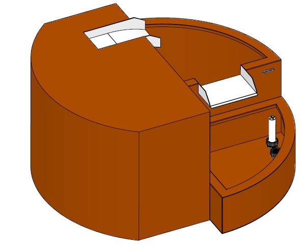 – Einseitig gerundet mit Radius: ca. 750 mm