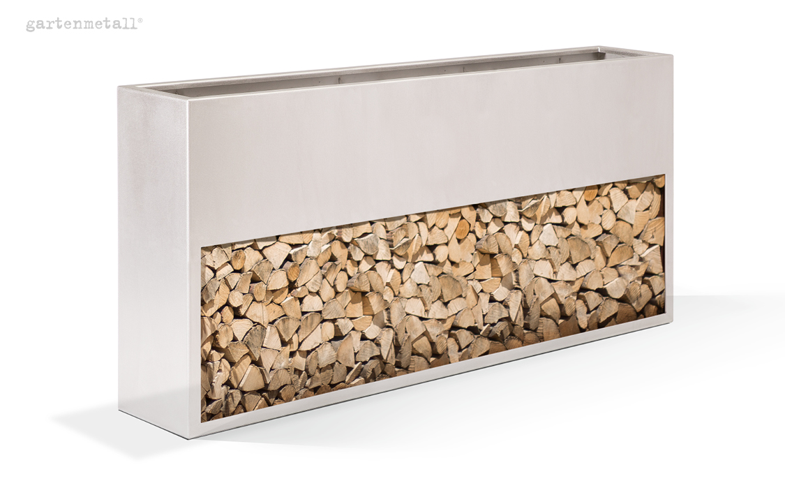 – Kombination aus Pflanzgefäß und Holzlege