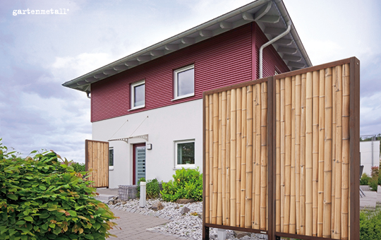 Ob pur als offener Rahmen, mit Bambus, mit Stahllamellen, Holz oder einer bauseitigen Füllung: WANDA VARIO passt sich an. Der Rahmen definiert den Raum, während Inhalt und Wirkung frei gewählt werden können. So entstehen Lösungen, die sich an Umgebung, Geschmack und Nutzung orientieren – von leicht und transparent bis geschlossen und schützend. Der Außenraum wird gegliedert, ohne starr zu wirken.