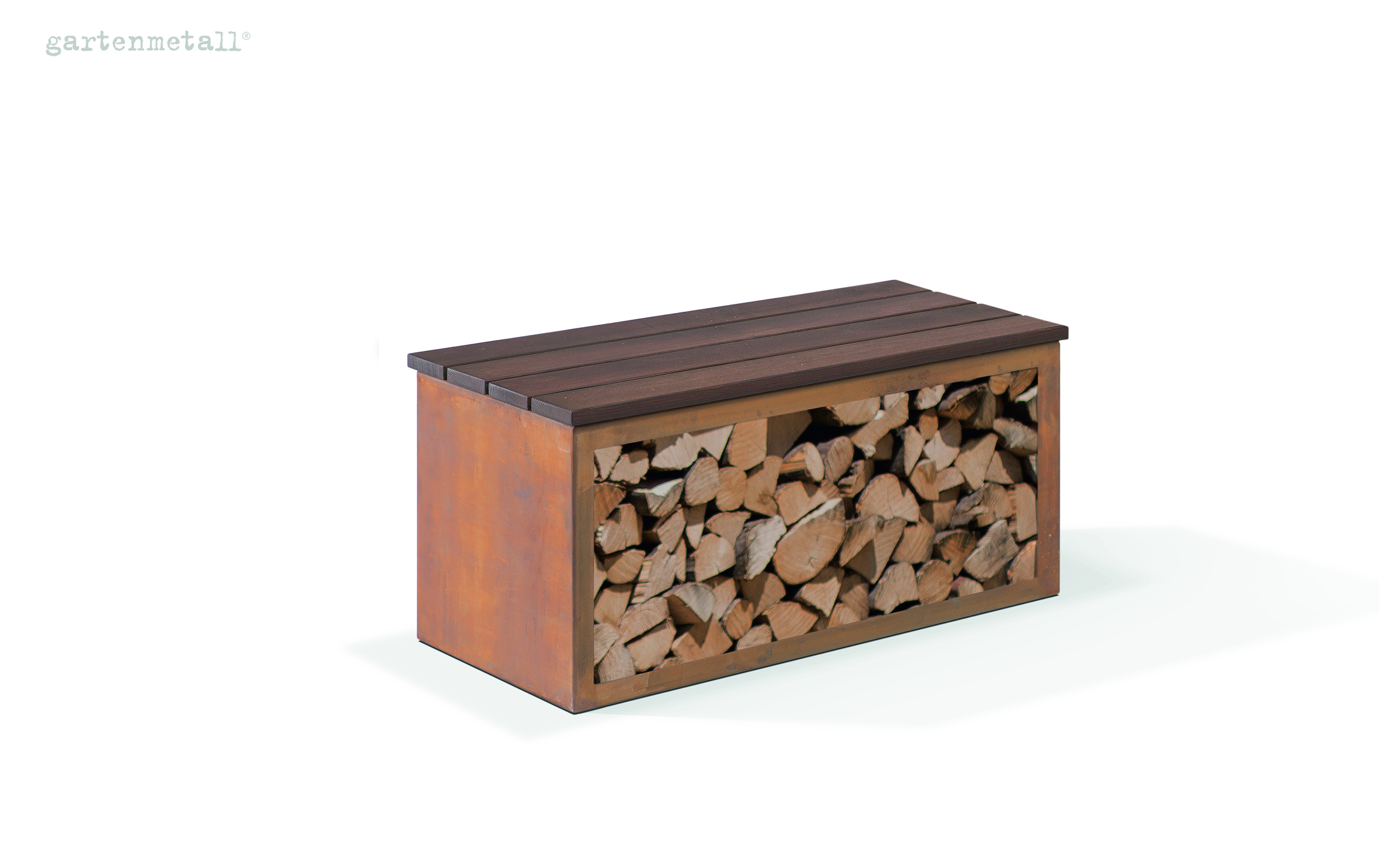 Der Mehrwert von MERAN liegt in dieser funktionalen Verbindung. Während die Sitzbank zum Ausruhen, Beobachten oder kurzen Pausen einlädt, sorgt die integrierte Holzlege für Struktur und Ordnung. Brennholz ist sauber gestapelt, gut belüftet und genau dort verfügbar, wo es gebraucht wird – ohne zusätzliche Regale oder separate Lagerflächen. So entsteht ein aufgeräumtes Gesamtbild, das Alltag und Gestaltung miteinander vereint.