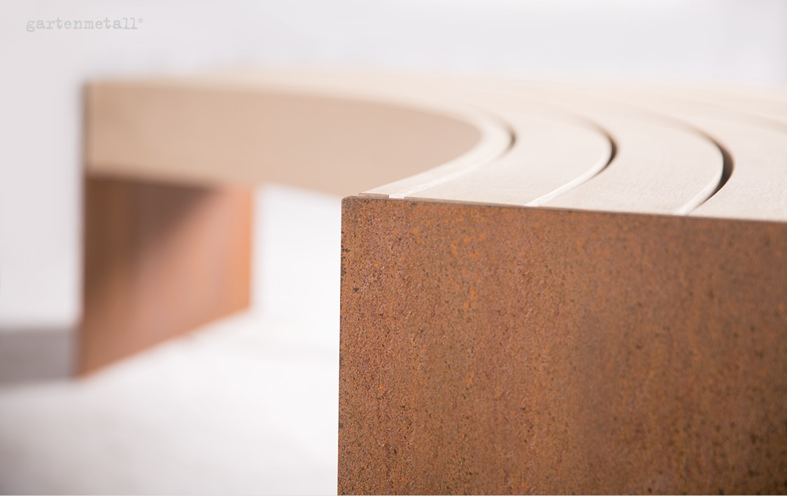 – Bei Cortenstahl in Edelrostoptik kommt es besonders in den ersten Jahren zu einer gewissen Rostablösung von 0,05 mm der Oberfläche. Die Aufstellung ist so zu planen, dass diese Rostablösung definiert ablaufen kann und es zu keiner Verfärbung im Bereich der Objekte kommt