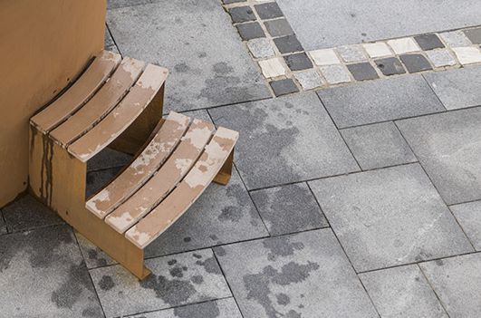 Bei Cortenstahl kommt es besonders in den ersten Jahren zu einer gewissen Rostablösung von 0,05 mm der Oberfläche. Die Aufstellung ist so zu planen, dass diese Rostablösung definiert ablaufen kann.