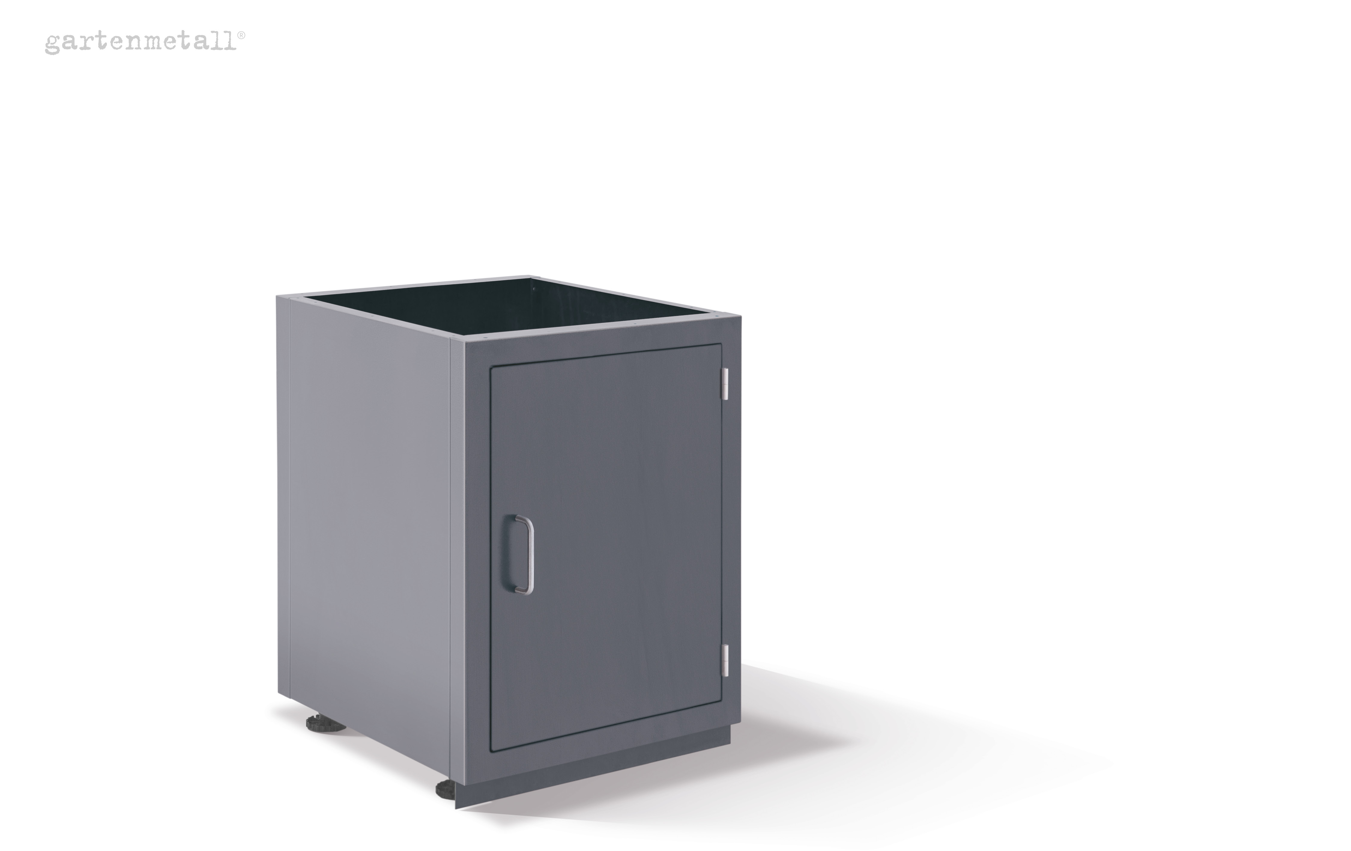 Schrankmodul, vorne mit einer Tür, justierbare Füße und ohne Küchenarbeitsplatte