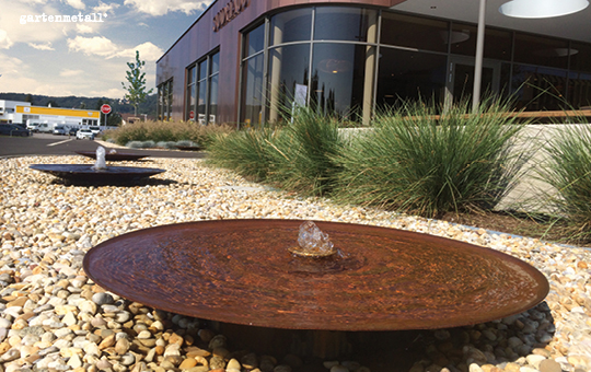 Damit der Cortenstahl an den wasserbenetzten Oberflächen die schützende Sperrschicht aufbauen bzw. erhalten kann, muss dieser mindestens einmal pro Woche komplett abtrocknen. Die Wasserpumpe sollte daher z. B. mit einer Zeitschaltuhr immer wieder abgeschaltet werden.