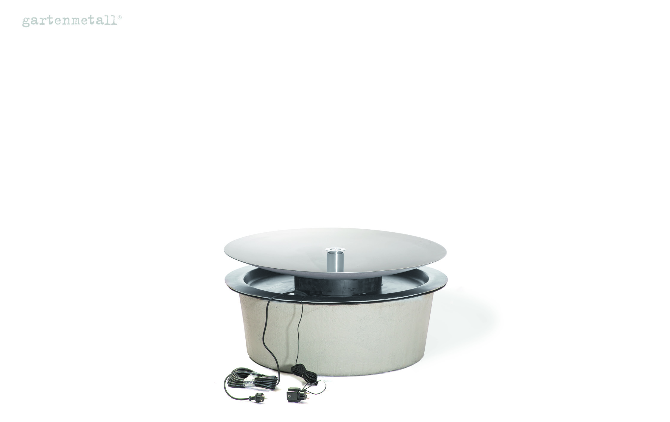 – Das Wassersammelbecken wird unter dem Quellbrunnen AQUA BOWL im Boden eingegraben. Die Wasserschale steht auf einer Abdeckung, die mit dem Wassersammelbecken geliefert wird und im Lieferumfang enthalten ist.