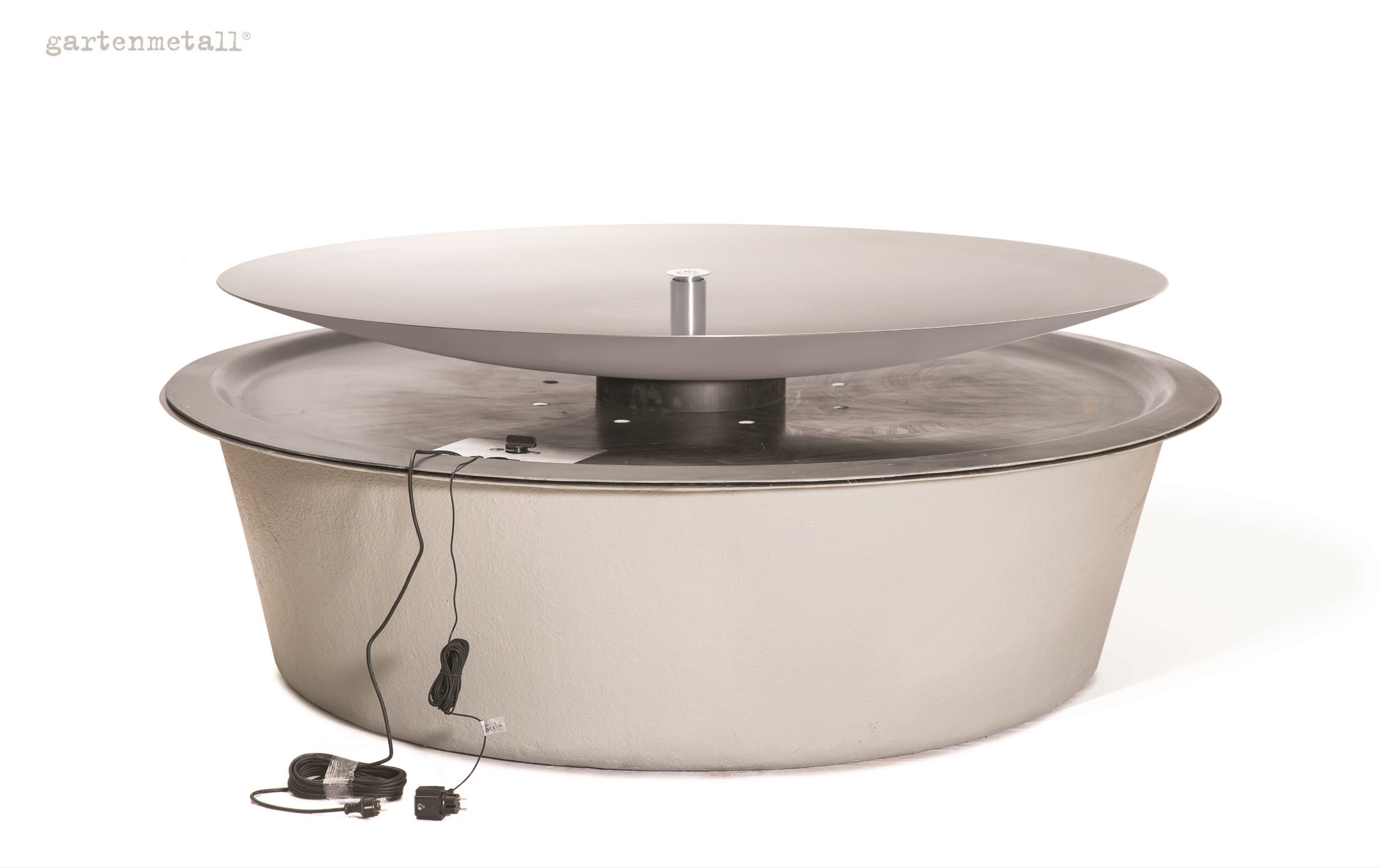 – Das Wassersammelbecken wird unter dem Quellbrunnen AQUA BOWL im Boden eingegraben. Die Wasserschale steht auf einer Abdeckung, die mit dem Wassersammelbecken geliefert wird und im Lieferumfang enthalten ist.