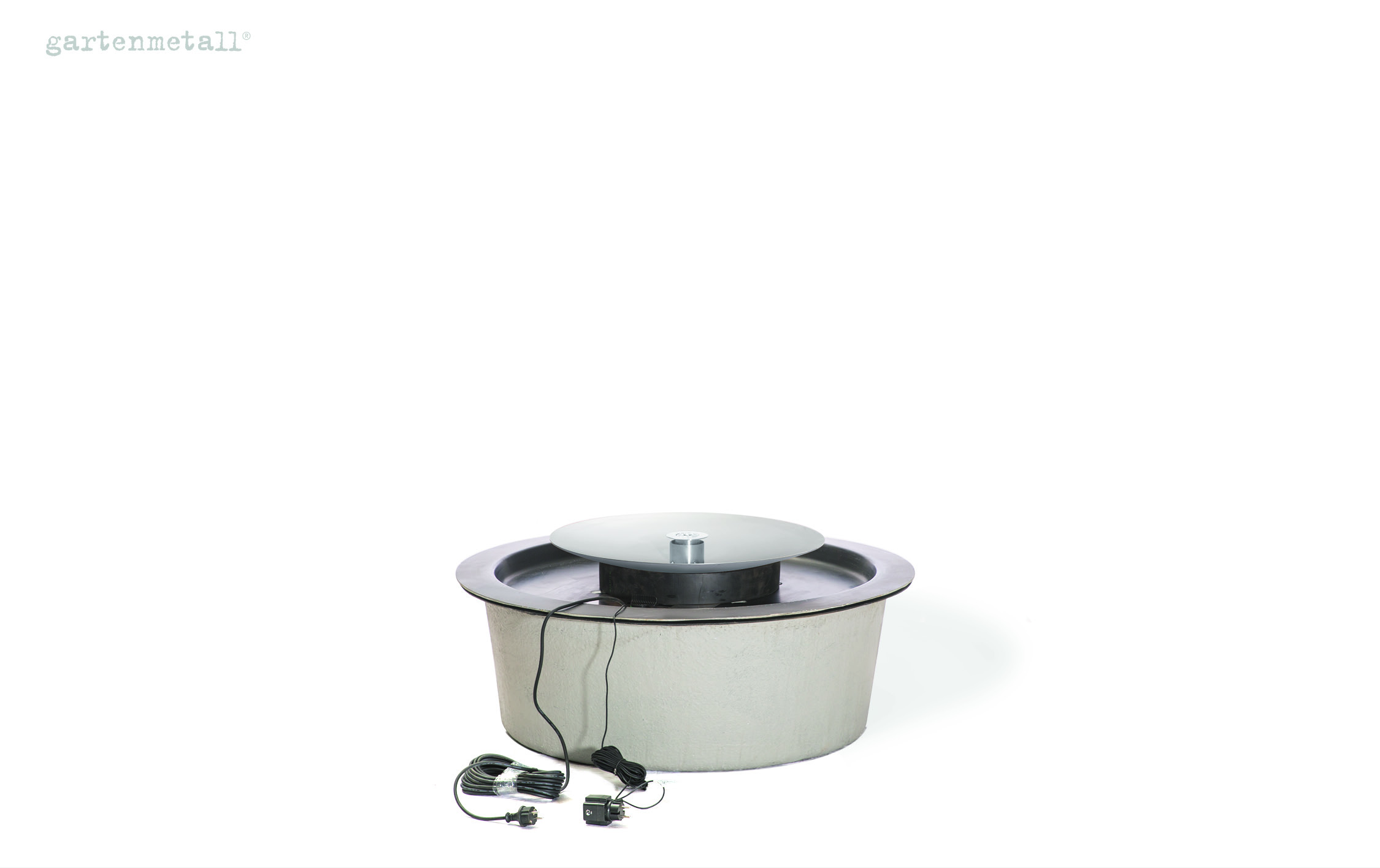– Das Wassersammelbecken wird unter dem Quellbrunnen AQUA BOWL im Boden eingegraben. Die Wasserschale steht auf einer Abdeckung, die mit dem Wassersammelbecken geliefert wird und im Lieferumfang enthalten ist.