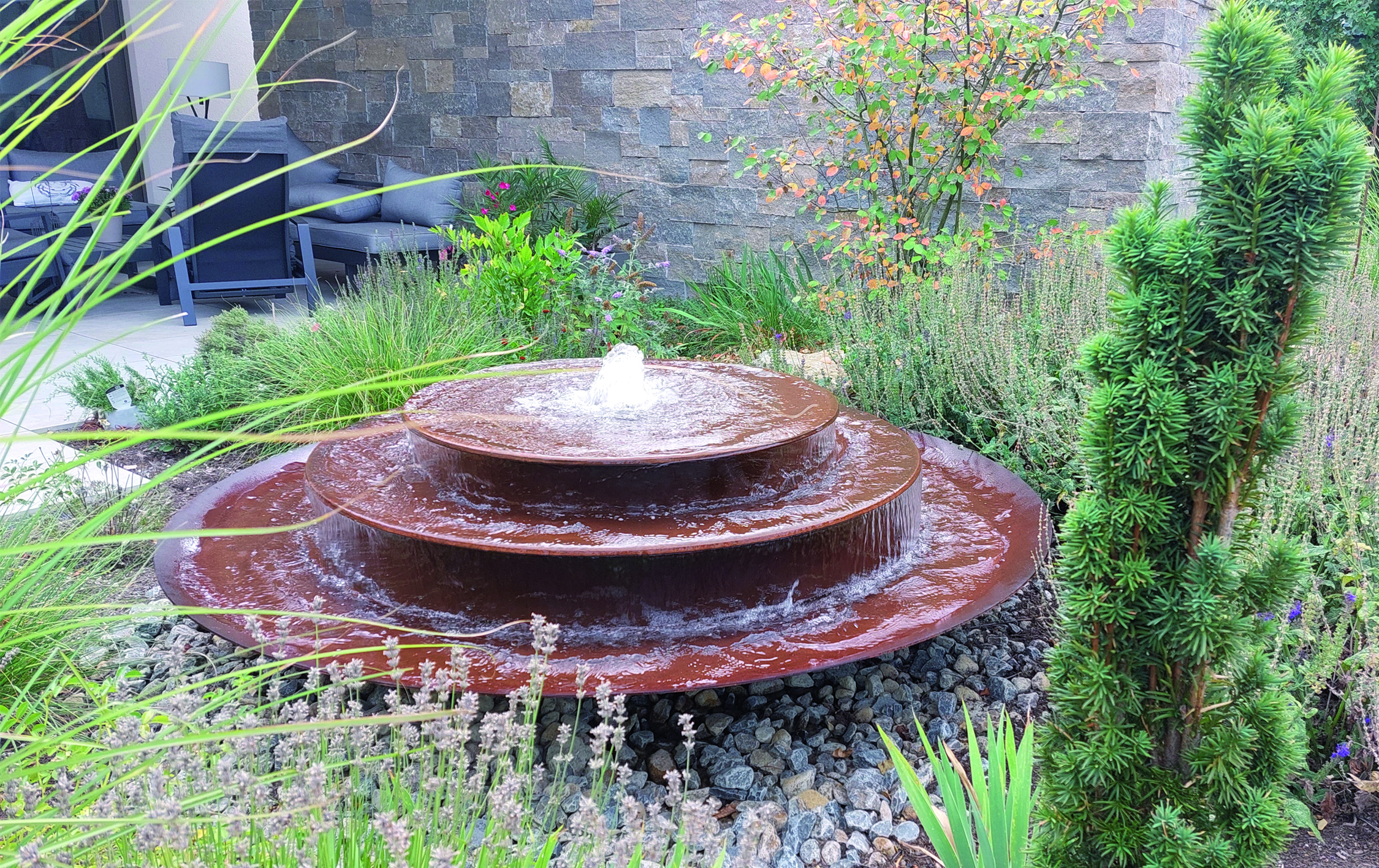 – Damit der Cortenstahl an den wasserbenetzten Oberflächen die schützende Sperrschicht aufbauen bzw. erhalten kann, muss dieser mindestens einmal pro Woche komplett abtrocknen. Die Wasserpumpe sollte daher z. B. mit einer Zeitschaltuhr immer wieder abgeschaltet werden.