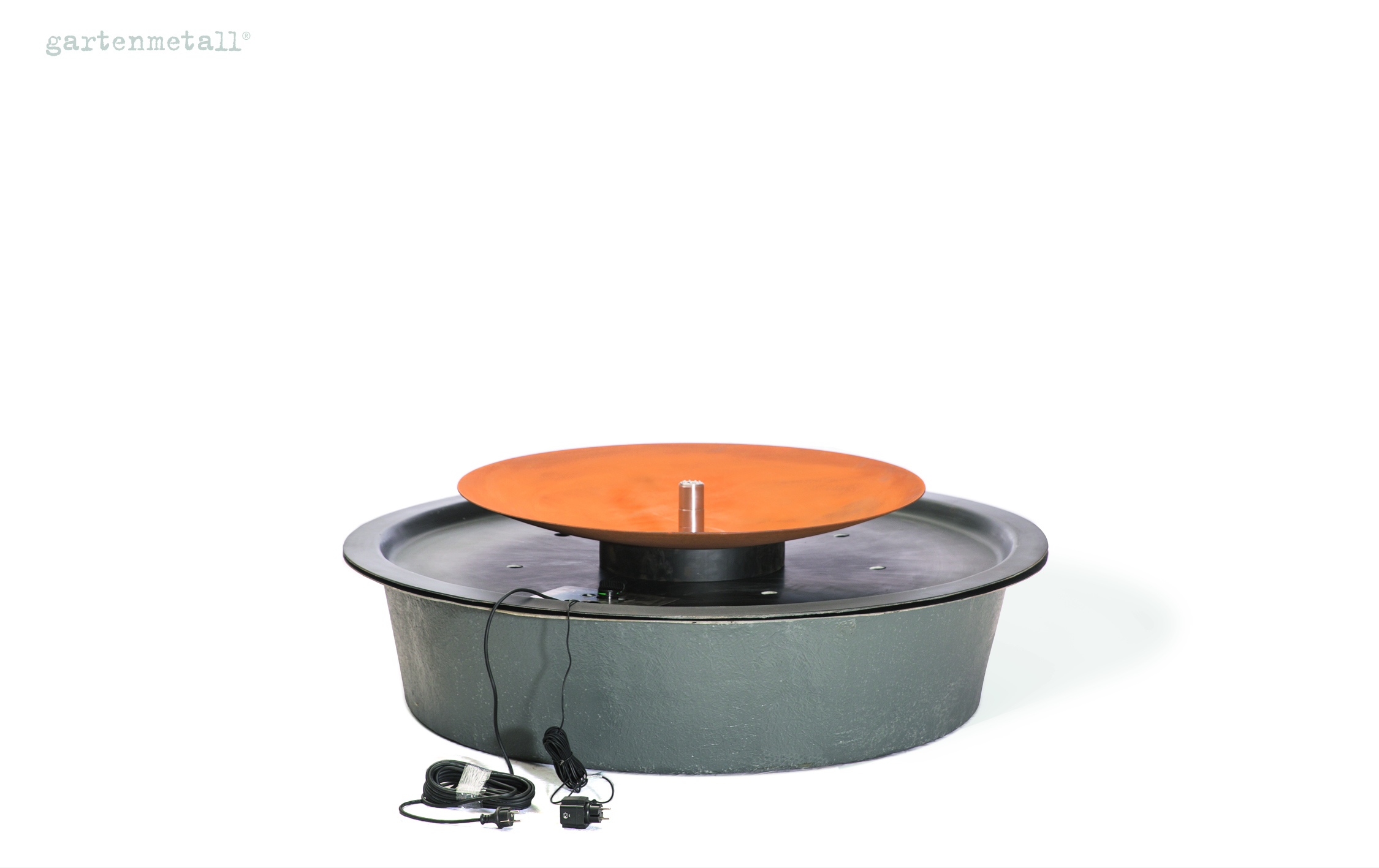 – Das Wassersammelbecken wird unter dem Quellbrunnen AQUA BOWL im Boden eingegraben. Die Wasserschale steht auf einer Abdeckung, die mit dem Wassersammelbecken geliefert wird und im Lieferumfang enthalten ist.