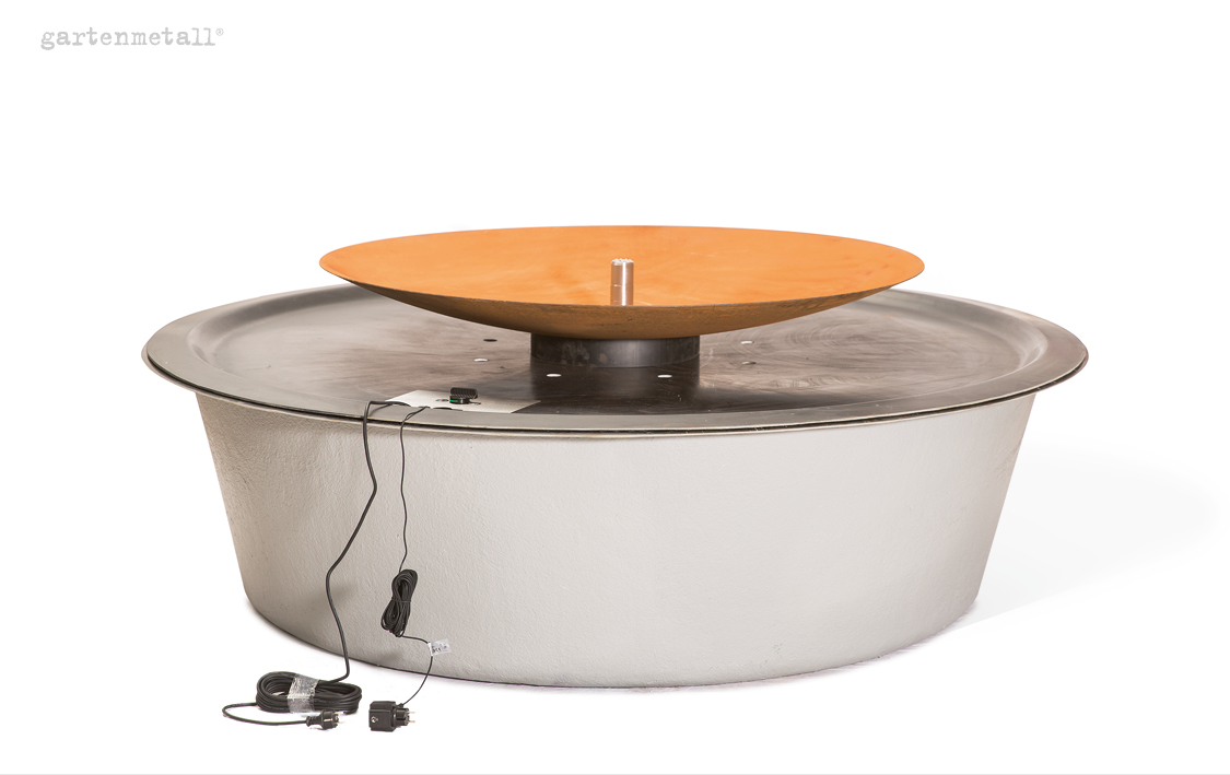 – Damit der Cortenstahl an den wasserbenetzten Oberflächen die schützende Sperrschicht aufbauen bzw. erhalten kann, muss dieser mindestens einmal pro Woche komplett abtrocknen. Die Wasserpumpe sollte daher z. B. mit einer Zeitschaltuhr immer wieder abgeschaltet werden.