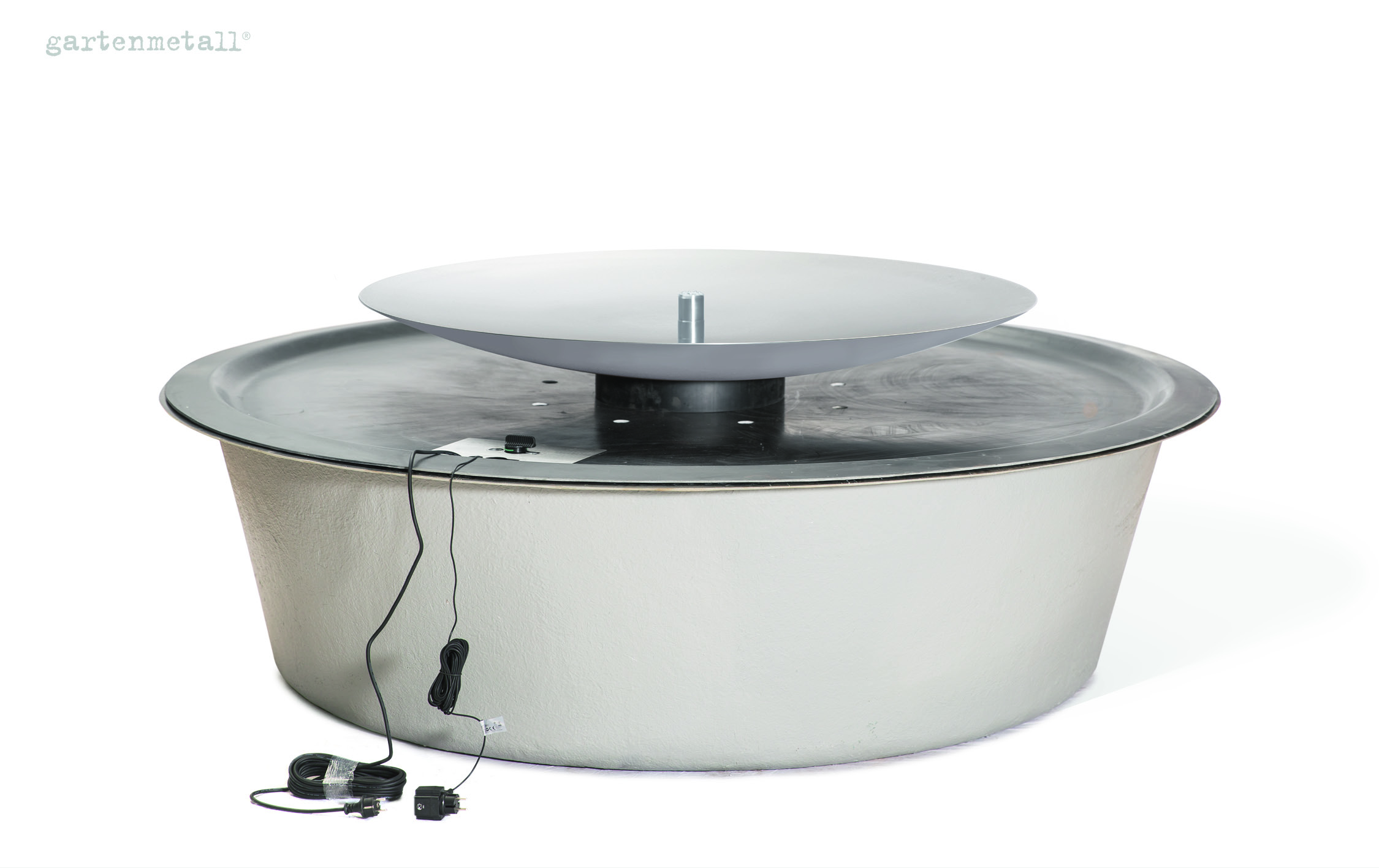 – Das Wassersammelbecken wird unter dem Quellbrunnen AQUA BOWL im Boden eingegraben. Die Wasserschale steht auf einer Abdeckung, die mit dem Wassersammelbecken geliefert wird und im Lieferumfang enthalten ist.