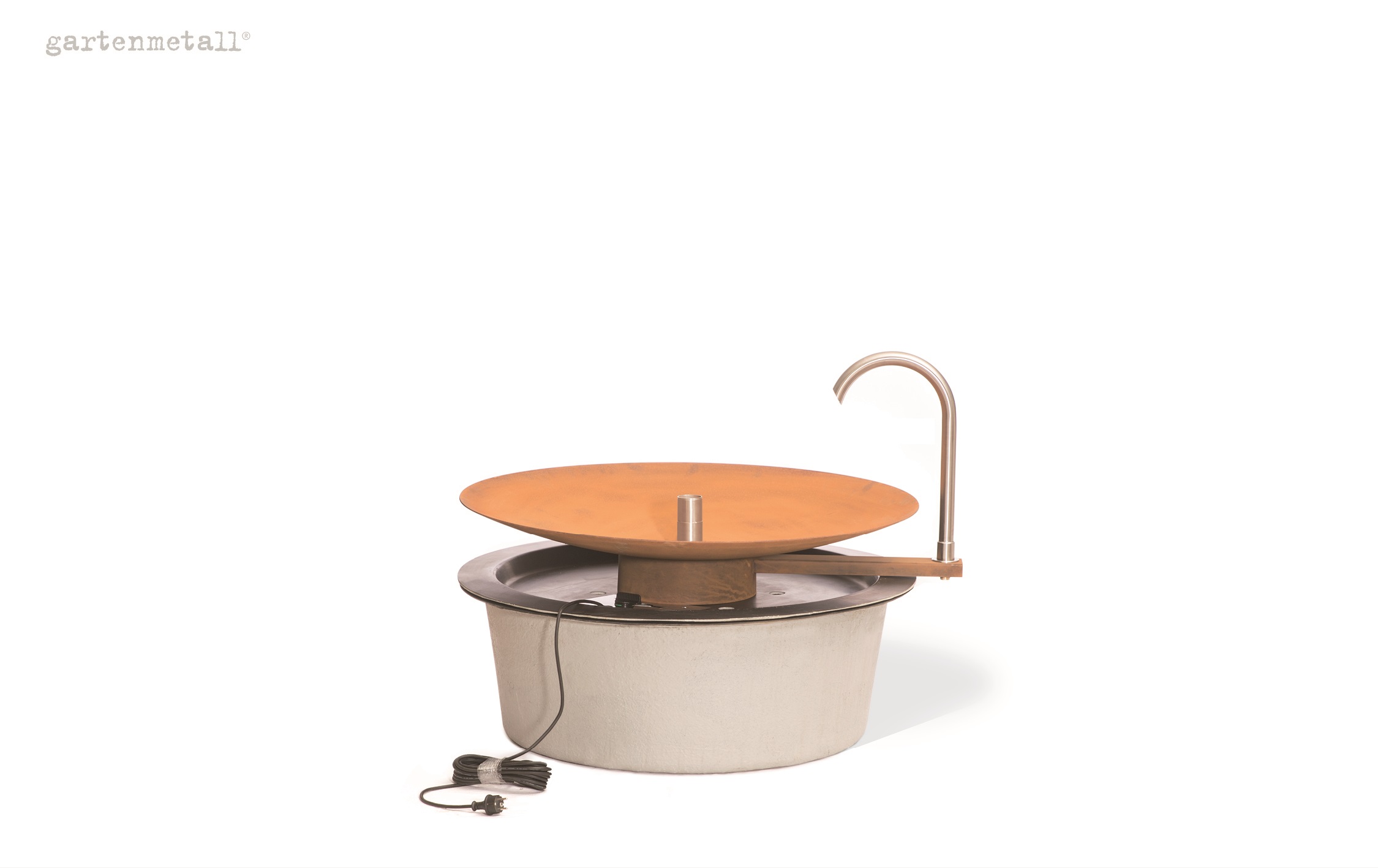 – Damit der Cortenstahl an den wasserbenetzten Oberflächen die schützende Sperrschicht aufbauen bzw. erhalten kann, muss dieser mindestens einmal pro Woche komplett abtrocknen. Die Wasserpumpe sollte daher z. B. mit einer Zeitschaltuhr immer wieder abgeschaltet werden.