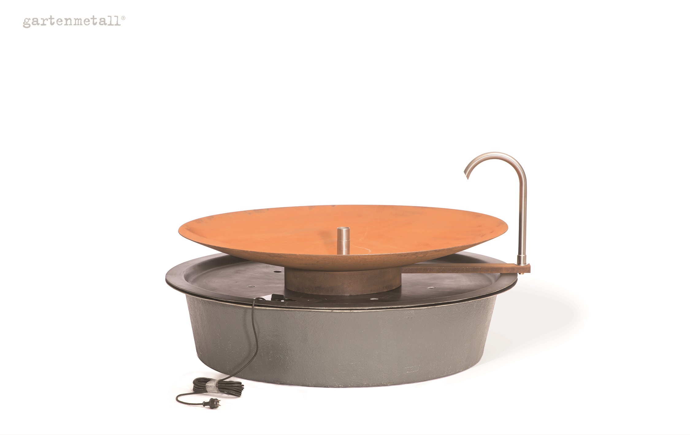 – Damit der Cortenstahl an den wasserbenetzten Oberflächen die schützende Sperrschicht aufbauen bzw. erhalten kann, muss dieser mindestens einmal pro Woche komplett abtrocknen. Die Wasserpumpe sollte daher z. B. mit einer Zeitschaltuhr immer wieder abgeschaltet werden.
