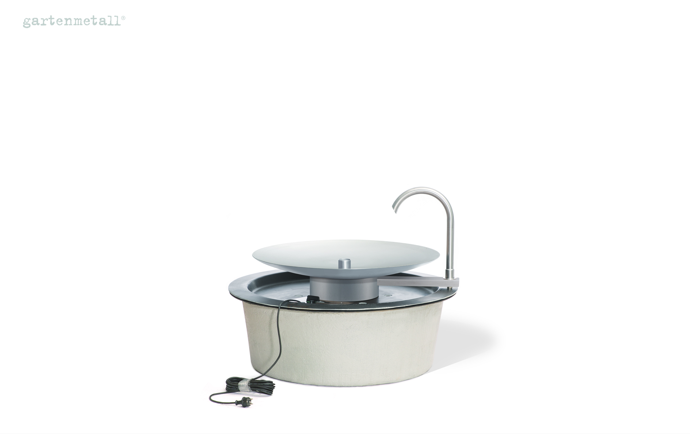 – Das Wassersammelbecken wird unter dem Quellbrunnen AQUA BOWL im Boden eingegraben. Die Wasserschale steht auf einer Abdeckung, die mit dem Wassersammelbecken geliefert wird und im Lieferumfang enthalten ist.