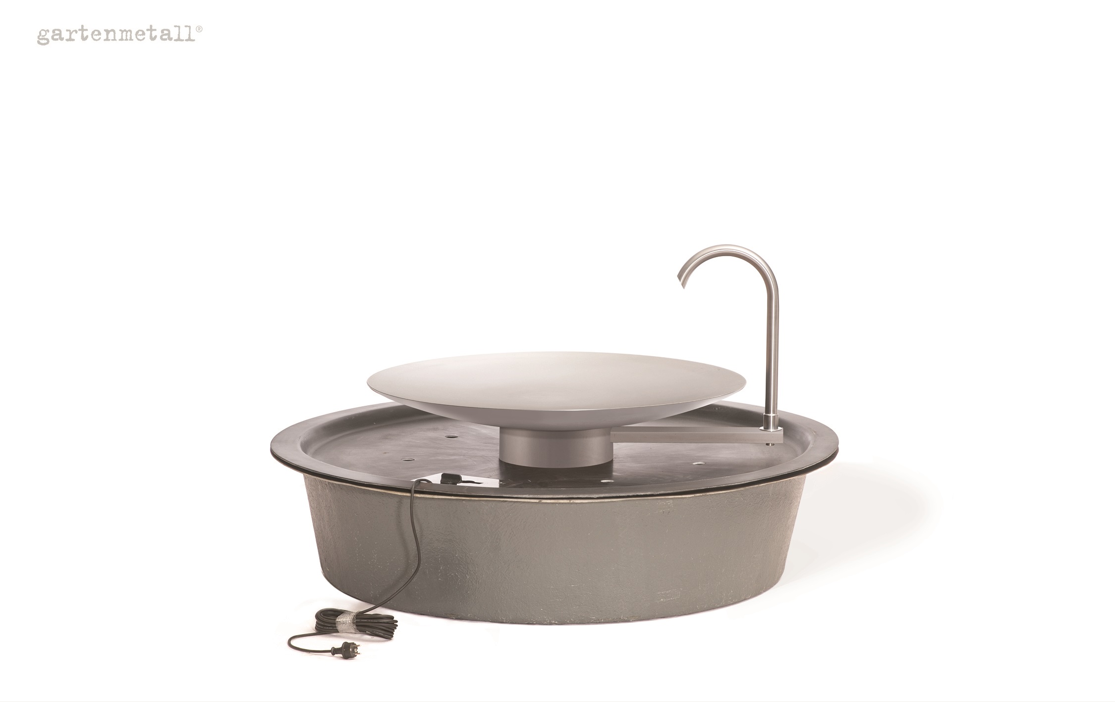 – Das Wassersammelbecken wird unter dem Quellbrunnen AQUA BOWL im Boden eingegraben. Die Wasserschale steht auf einer Abdeckung, die mit dem Wassersammelbecken geliefert wird und im Lieferumfang enthalten ist.