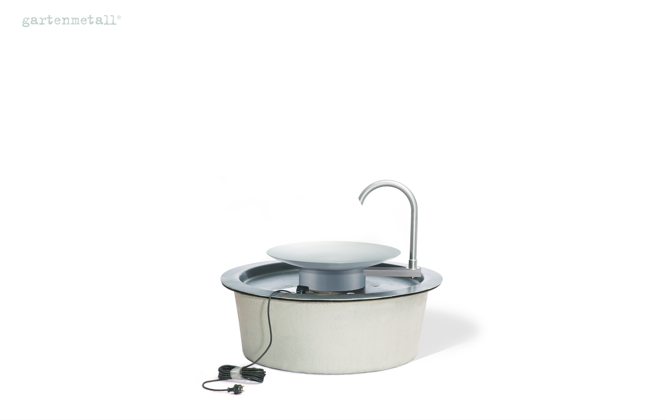 – Das Wassersammelbecken wird unter dem Quellbrunnen AQUA BOWL im Boden eingegraben. Die Wasserschale steht auf einer Abdeckung, die mit dem Wassersammelbecken geliefert wird und im Lieferumfang enthalten ist.