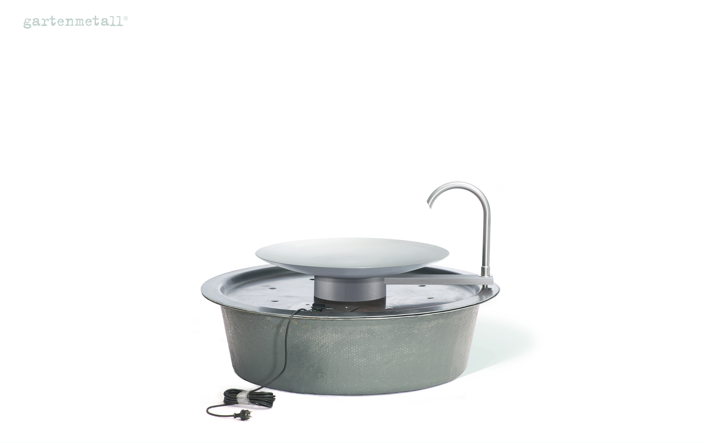 – Das Wassersammelbecken wird unter dem Quellbrunnen AQUA BOWL im Boden eingegraben. Die Wasserschale steht auf einer Abdeckung, die mit dem Wassersammelbecken geliefert wird und im Lieferumfang enthalten ist.