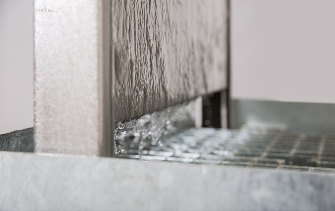 – Wasserwand mit Wasserlauf beidseitig